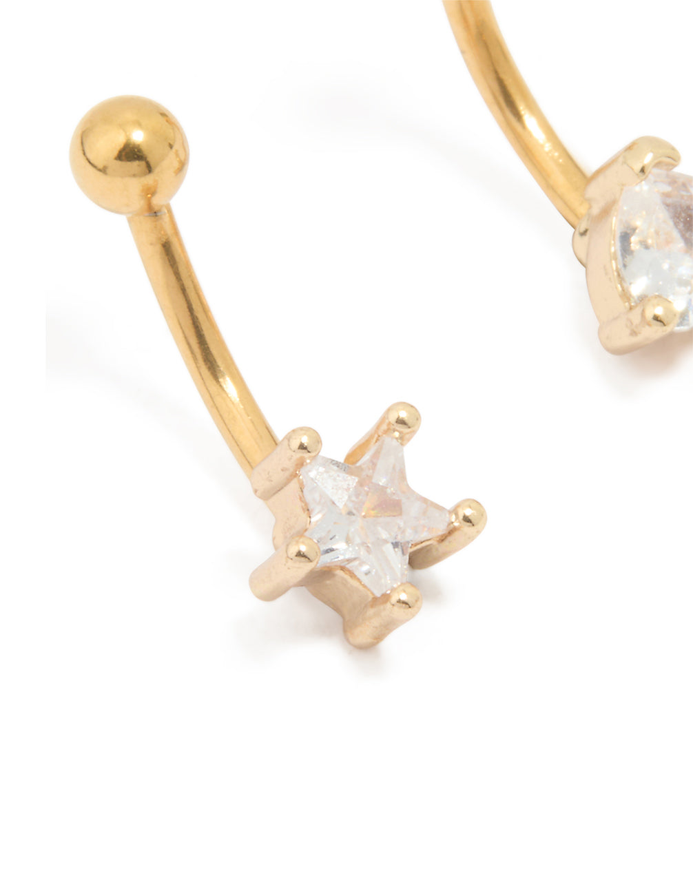 Add a touch of sparkle to your style with this Gold Plated Surgical Steel Cubic Zirconia Ear & Body Jewellery Set! Perfect for belly button piercings and beyond, this versatile set combines sleek surgical steel with a luxurious gold plating for a polished finish. Designed to shine, the cubic zirconia crystals catch the light beautifully, making them ideal for any occasion.