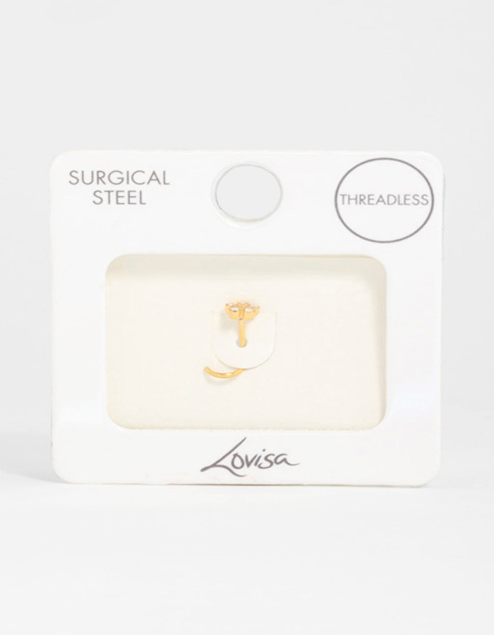 Gold Plated Surgical Steel Cubic Zirconia Flower Threadless Nose Stud