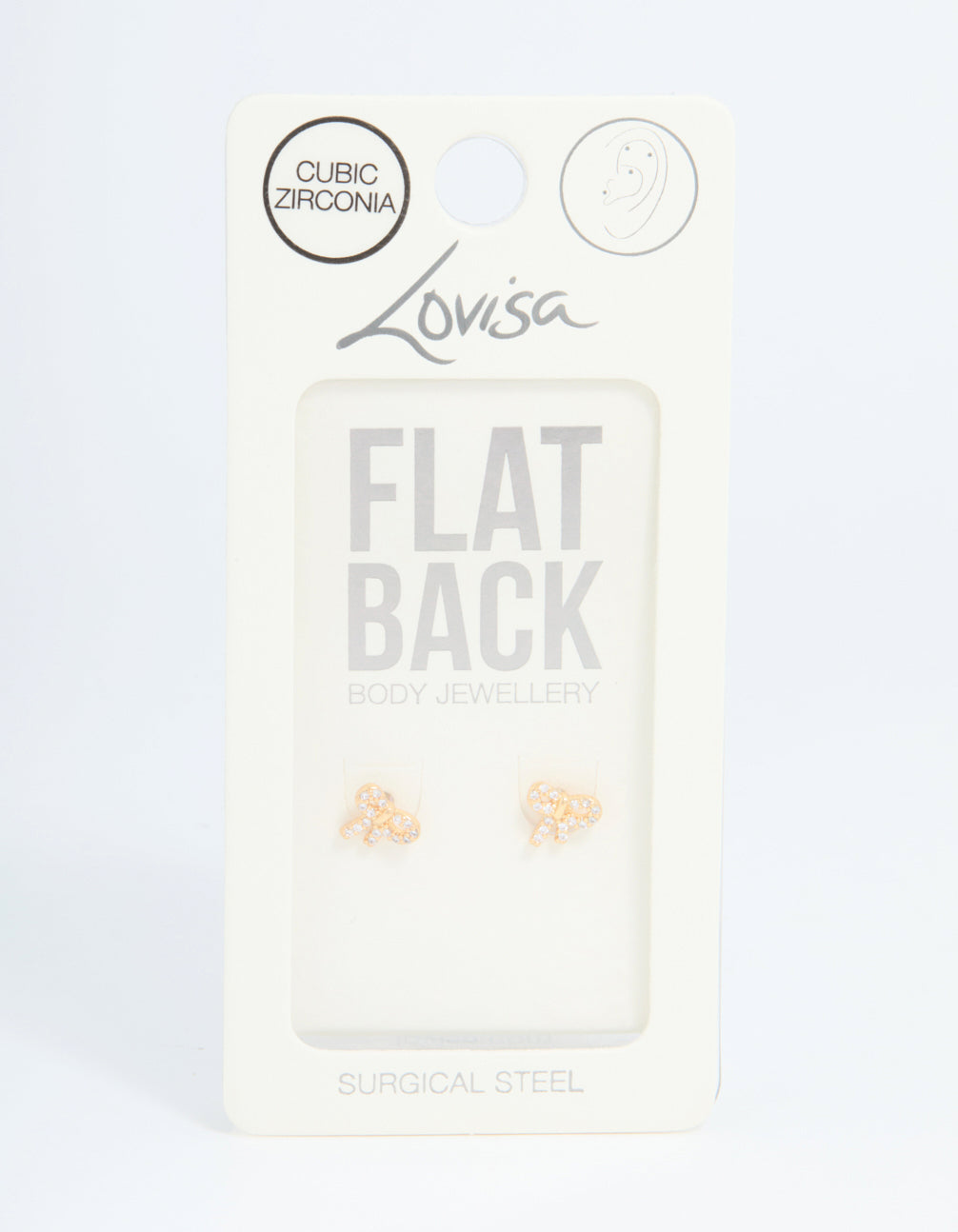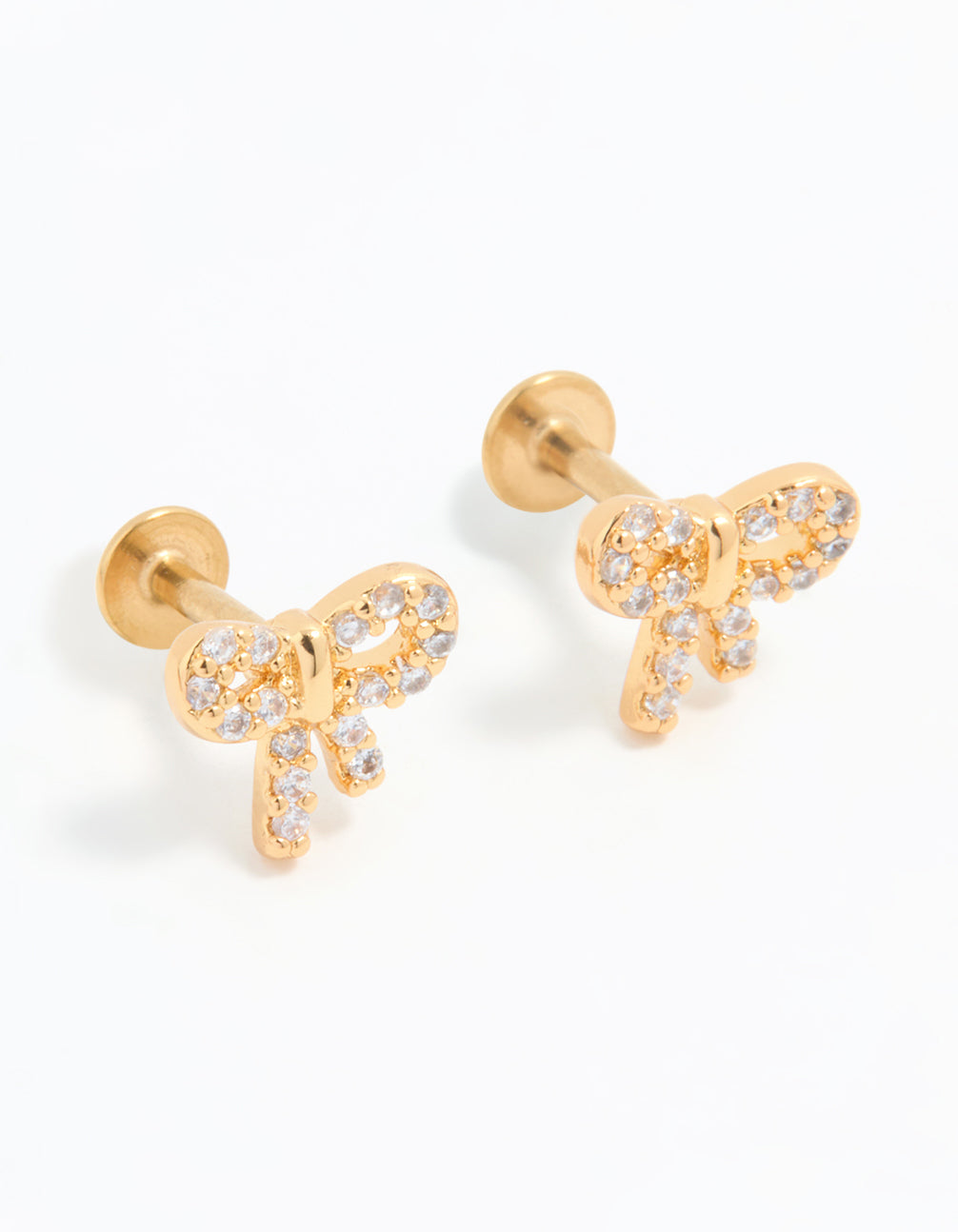 Gold Plated Surgical Steel Cubic Zirconia Pave Bow Flat Back Pair