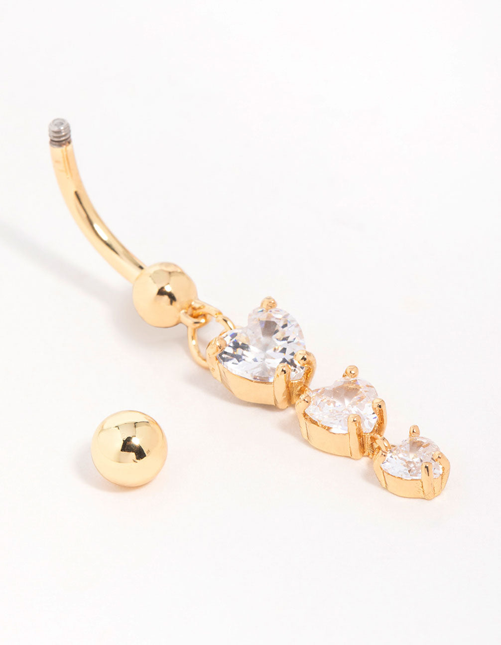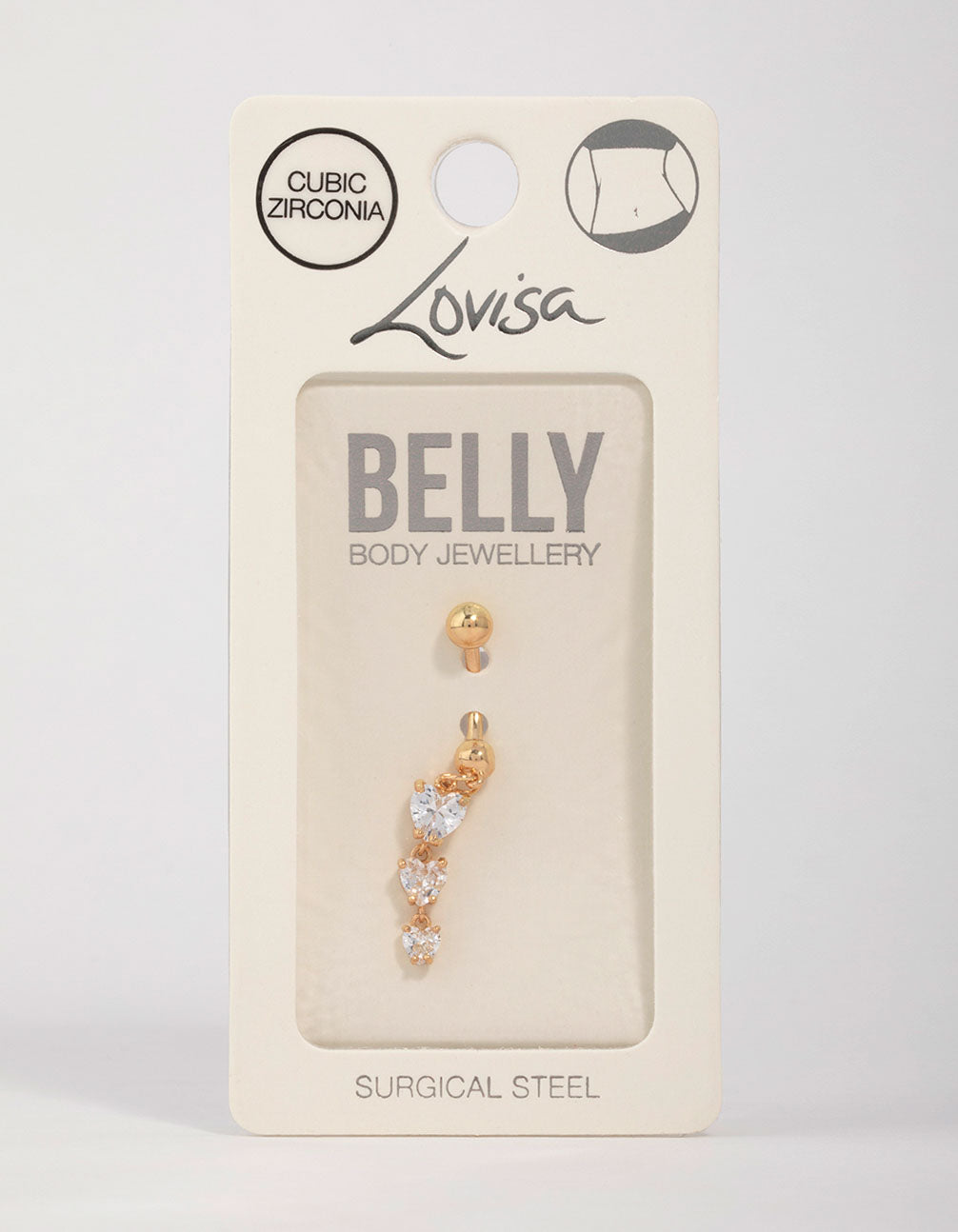 Gold Plated Surgical Steel Cubic Zirconia Triple Heart Belly Bar
