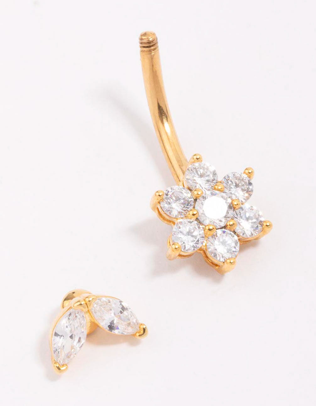 Gold Plated Surgical Steel Flower Leaf Belly Piercing