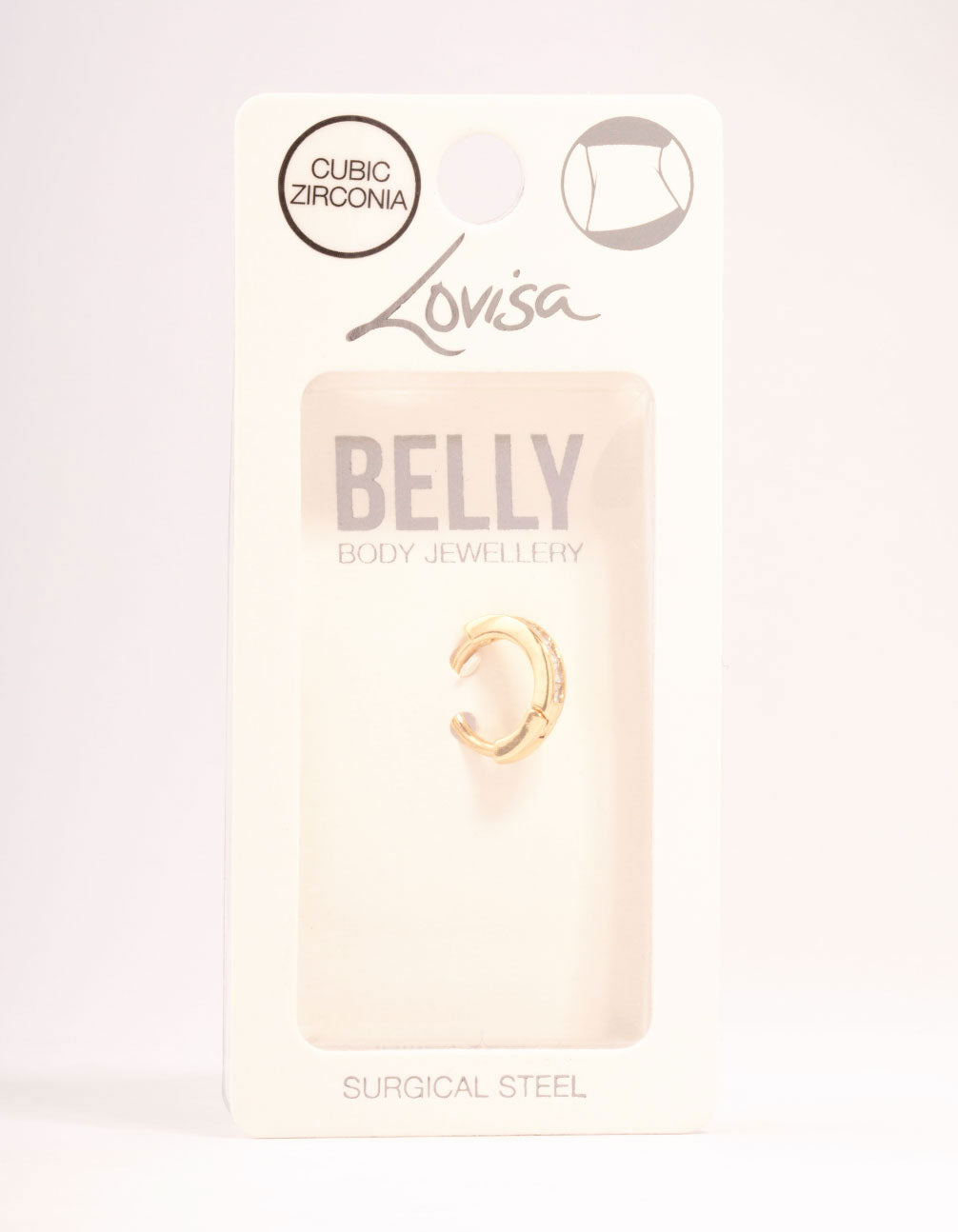 Gold Plated Surgical Steel Pave Cubic Zirconia Clicker Belly Bar