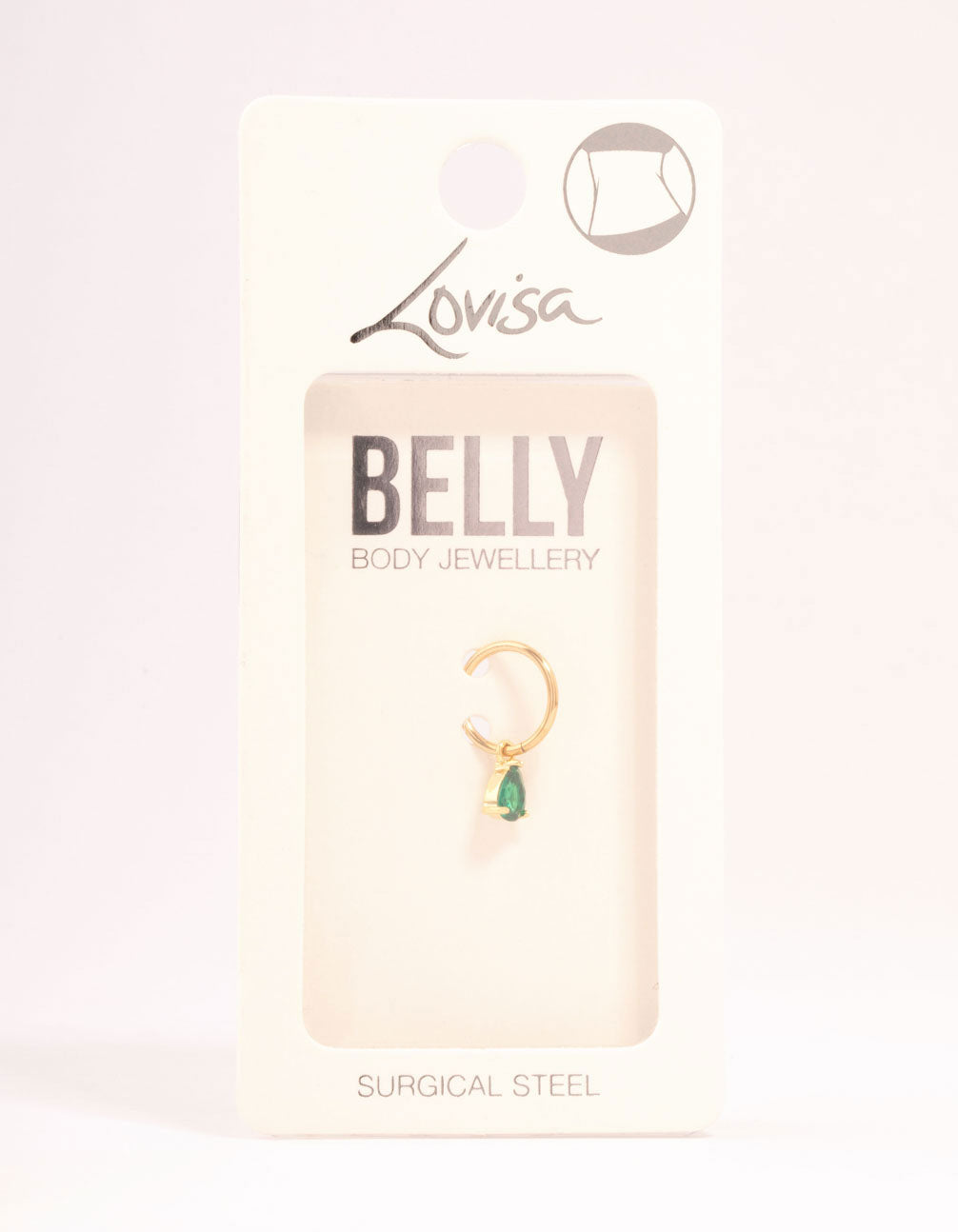 Upgrade your piercing game with this gold-plated surgical steel belly bar! The pear-drop green diamante adds elegance and a pop of colour. Perfect for accentuating your curves and making a bold statement..