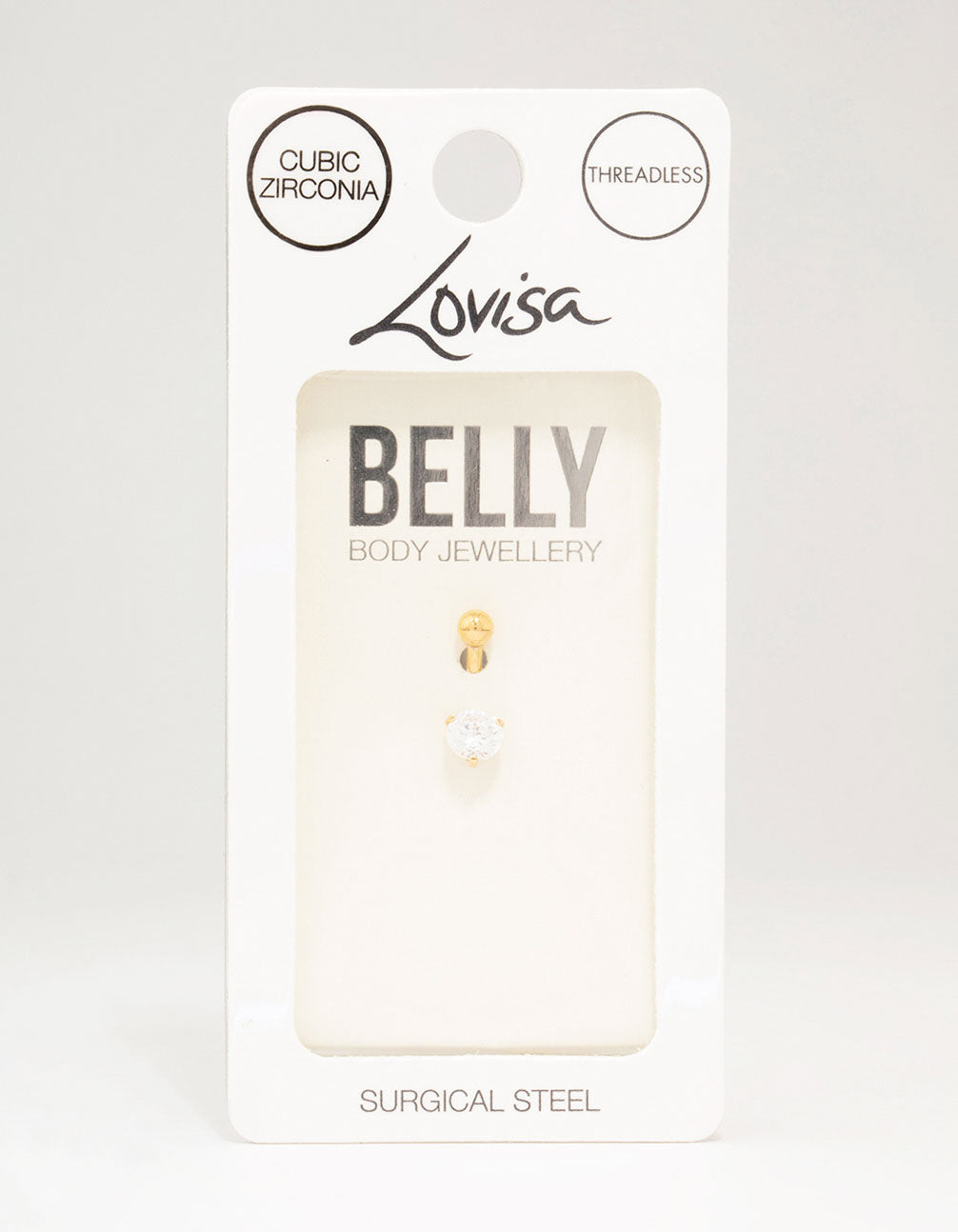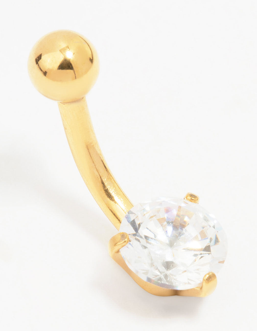 Customise your look with our selection of premium, genuine surgical steel piercing jewellery. This belly bar is plated with real gold and features a round, cubic zirconia crystal for a touch of glamour. This belly button piercing also features a threadless style, perfect for more secure wear so your piercing doesn't fall out but still can be removed easily if you need to remove it.