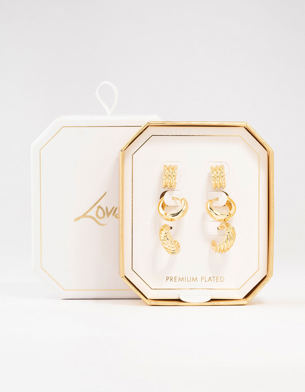 Treat your loved ones to this fab trio of gold-plated hoops. With hinged, twisted, and multilayered rope designs, it's the ultimate stylish gift, all wrapped up in a charming gift box.