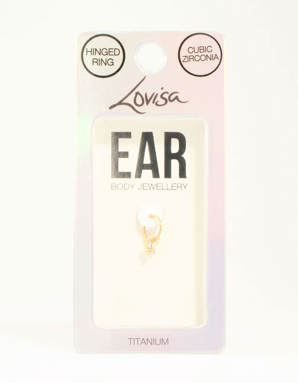 Meet your new favourite cartilage accessory: this butterfly clicker ring! Adorned with shimmering cubic zirconia crystals and gold-plated titanium, it's durable, hypoallergenic, and perfect for everyday wear.