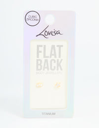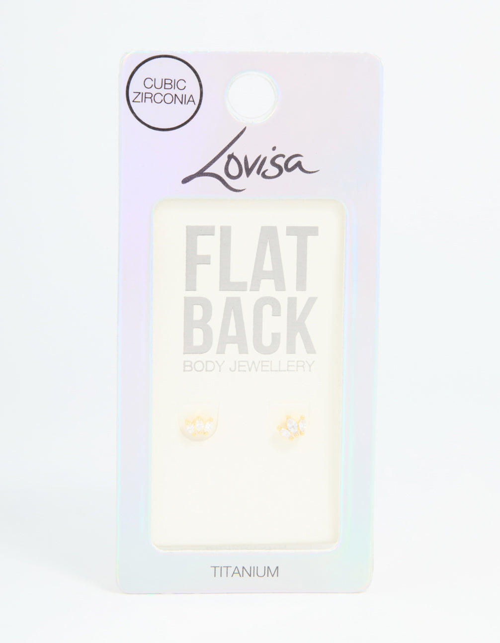Gold Plated Titanium Cubic Zirconia Cluster Flat Back Studs 2-Pack