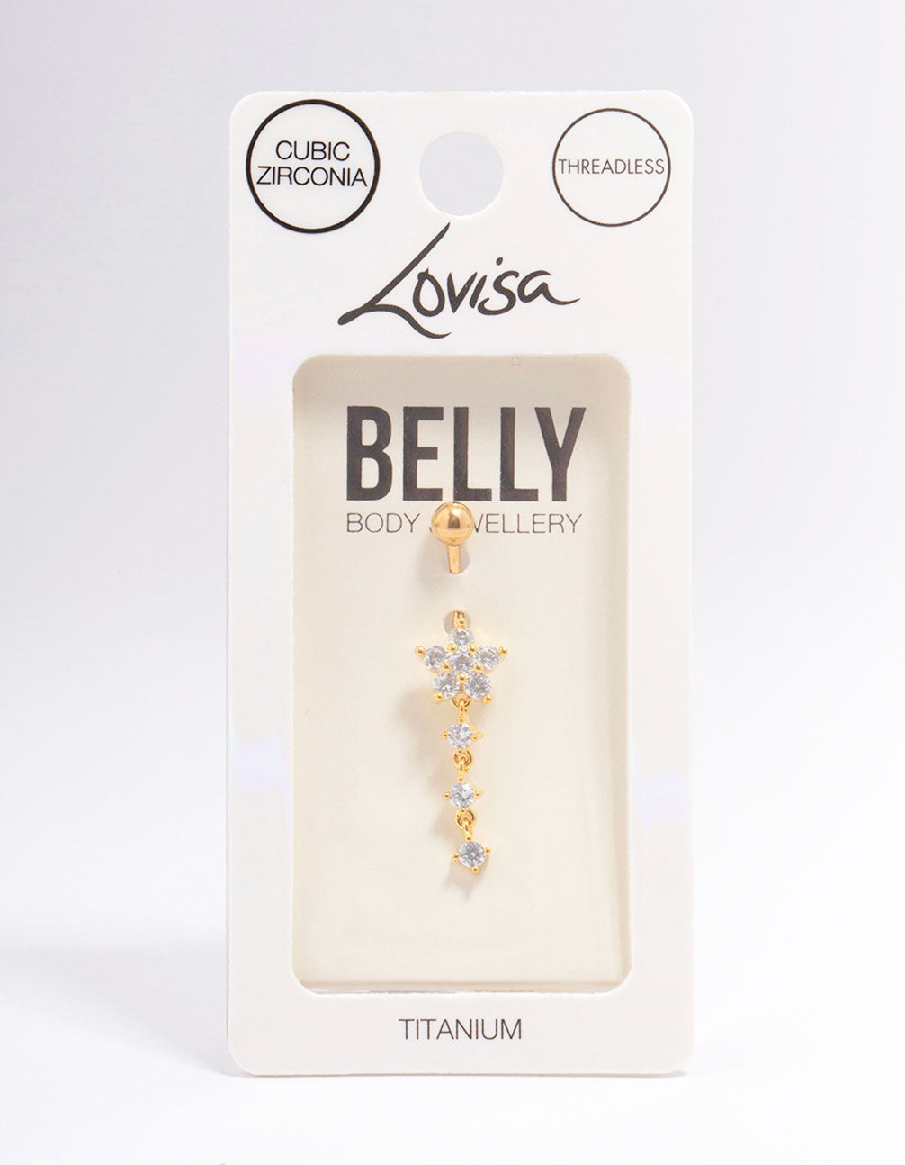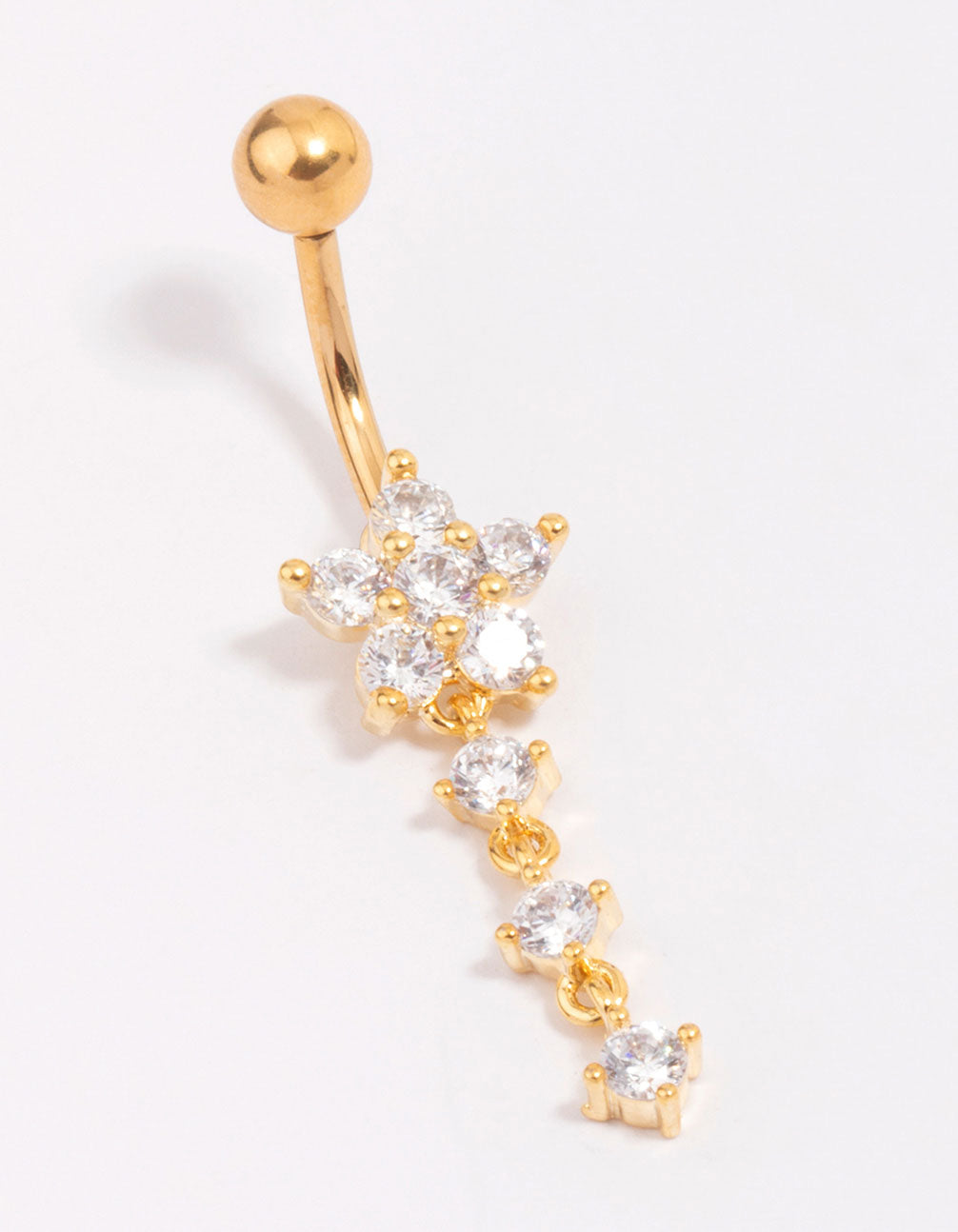 Turn heads with this Gold Plated Titanium Cubic Zirconia Flower Belly Bar, the perfect addition to your body jewellery collection. Designed for belly button piercings, this stunning piece features a delicate flower shape crafted from sparkling cubic zirconia crystals. Made with durable titanium and finished with luxurious gold plating, it's lightweight and skin-friendly. Ideal for adding a touch of glam to your festival outfit, beach day look, or night out ensemble, this belly bar pairs beautifully with crop tops, bikinis, or high-waisted jeans. Whether you're dressing up or keeping it casual, this crystal-studded beauty is here to shine!