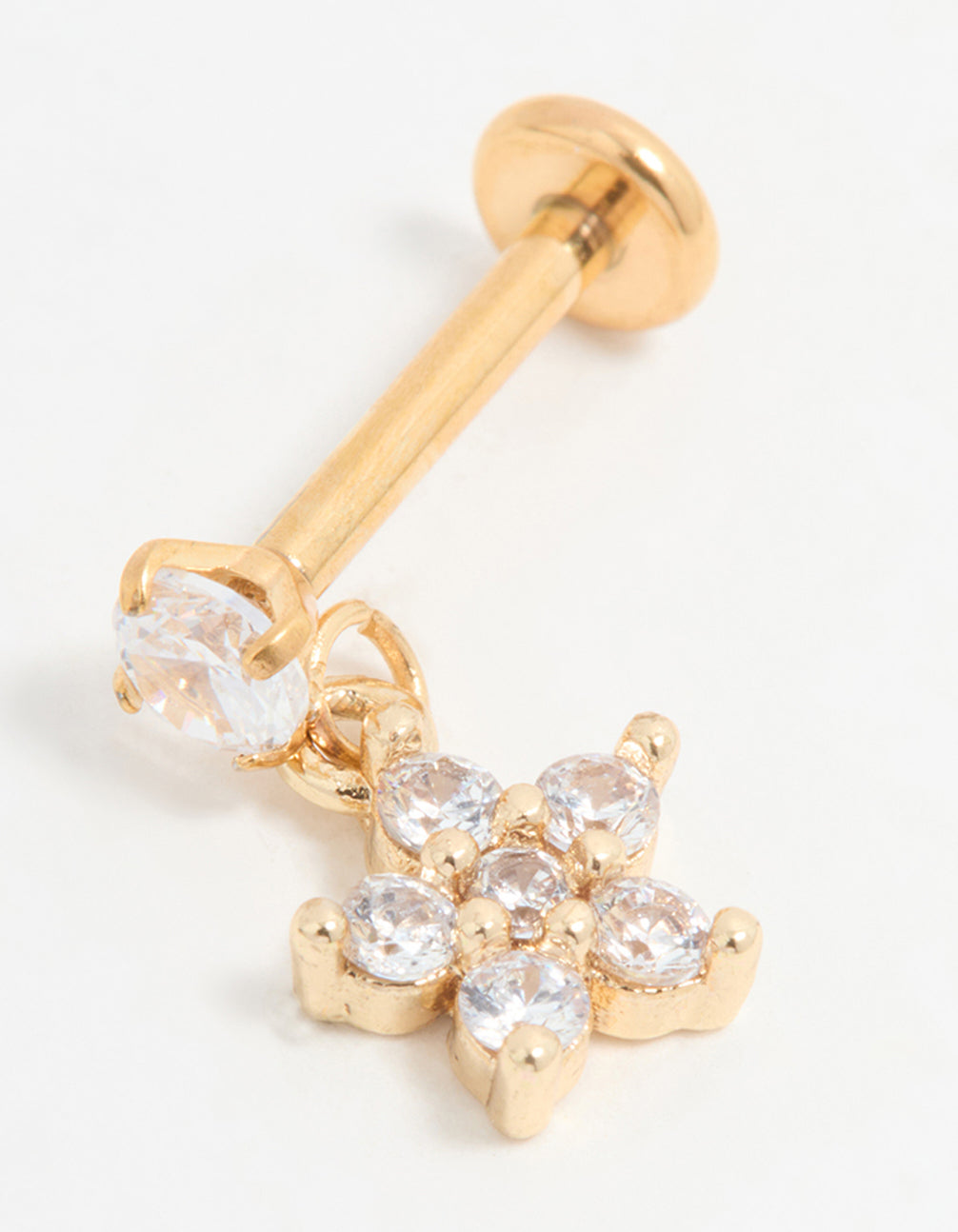 Gold Plated Titanium Cubic Zirconia Petal Flower Flat Back Stud Gold Plated Titanium Cubic Zirconia Petal Flower Flat Back Stud Gold Plated Titanium Cubic Zirconia Petal Flower Flat Back Stud