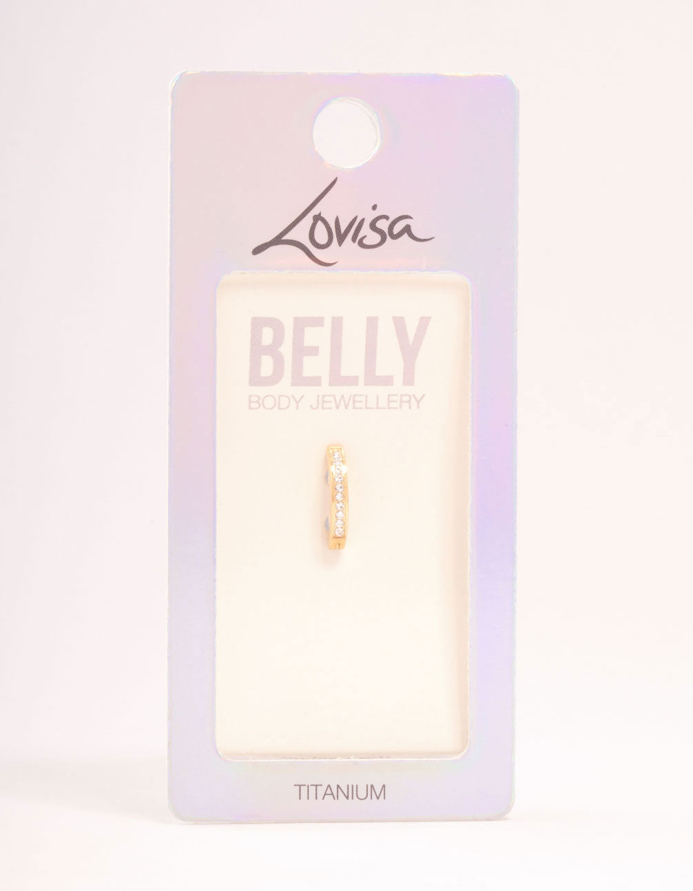 Upgrade your belly piercing with this striking belly ring. This belly ring features stunning diamante crystals for some glamour and features gold-plated titanium. Perfect for adding a dash of sparkle and accentuating your midriff.