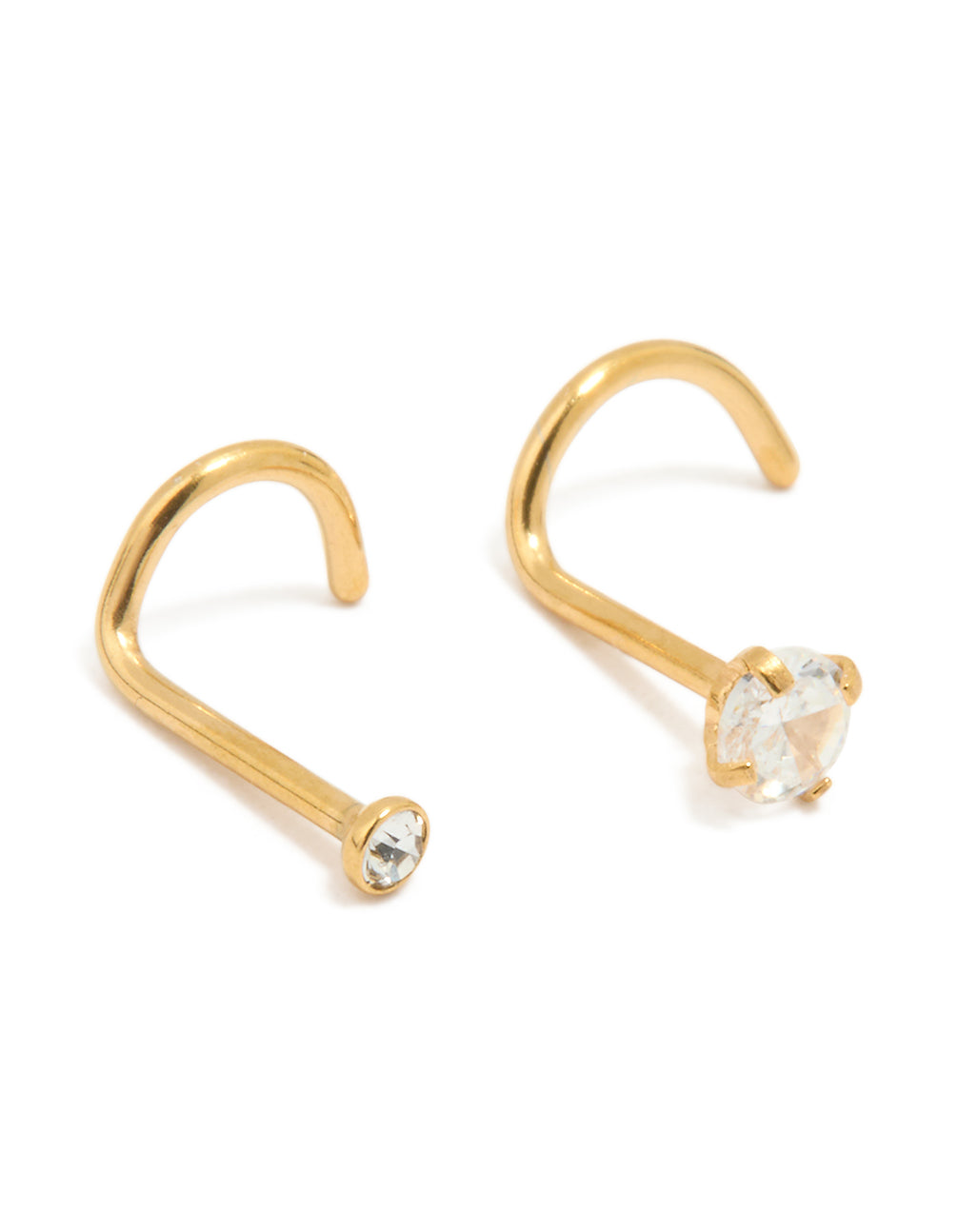 Add a touch of elegance to your look with this Gold Plated Titanium Diamante Butterfly & Classic Nose Stud Pack! This versatile set of nose piercings combines timeless charm with a playful edge. Featuring two classic studs and one delicate butterfly design adorned with sparkling cubic zirconia crystals, these nose studs are perfect for everyday wear or special occasions. Crafted from durable titanium and finished with luxurious gold plating, they're lightweight, hypoallergenic, and designed for comfort. Whether you're dressing up for a night out or keeping it casual, pair them with your favourite outfits for an effortlessly stylish vibe.