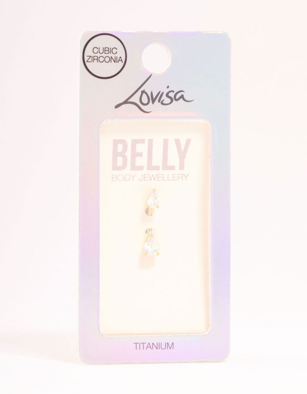 This belly piercing is crafted from titanium, plated with gold, and features pear-shaped cubic zirconia crystals to add sparkle to your look.