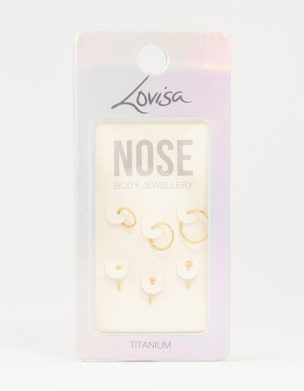 Gold Plated Titanium Ring & Cubic Zirconia Stud Nose Piercings 6-Pack Gold Plated Titanium Ring & Cubic Zirconia Stud Nose Piercings 6-Pack Gold Plated Titanium Ring & Cubic Zirconia Stud Nose Piercings 6-Pack