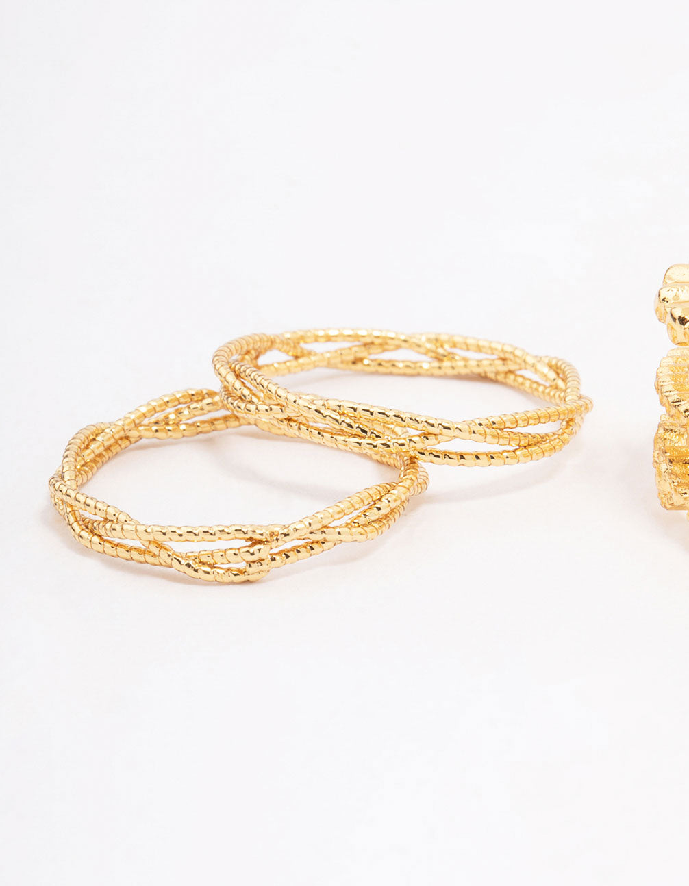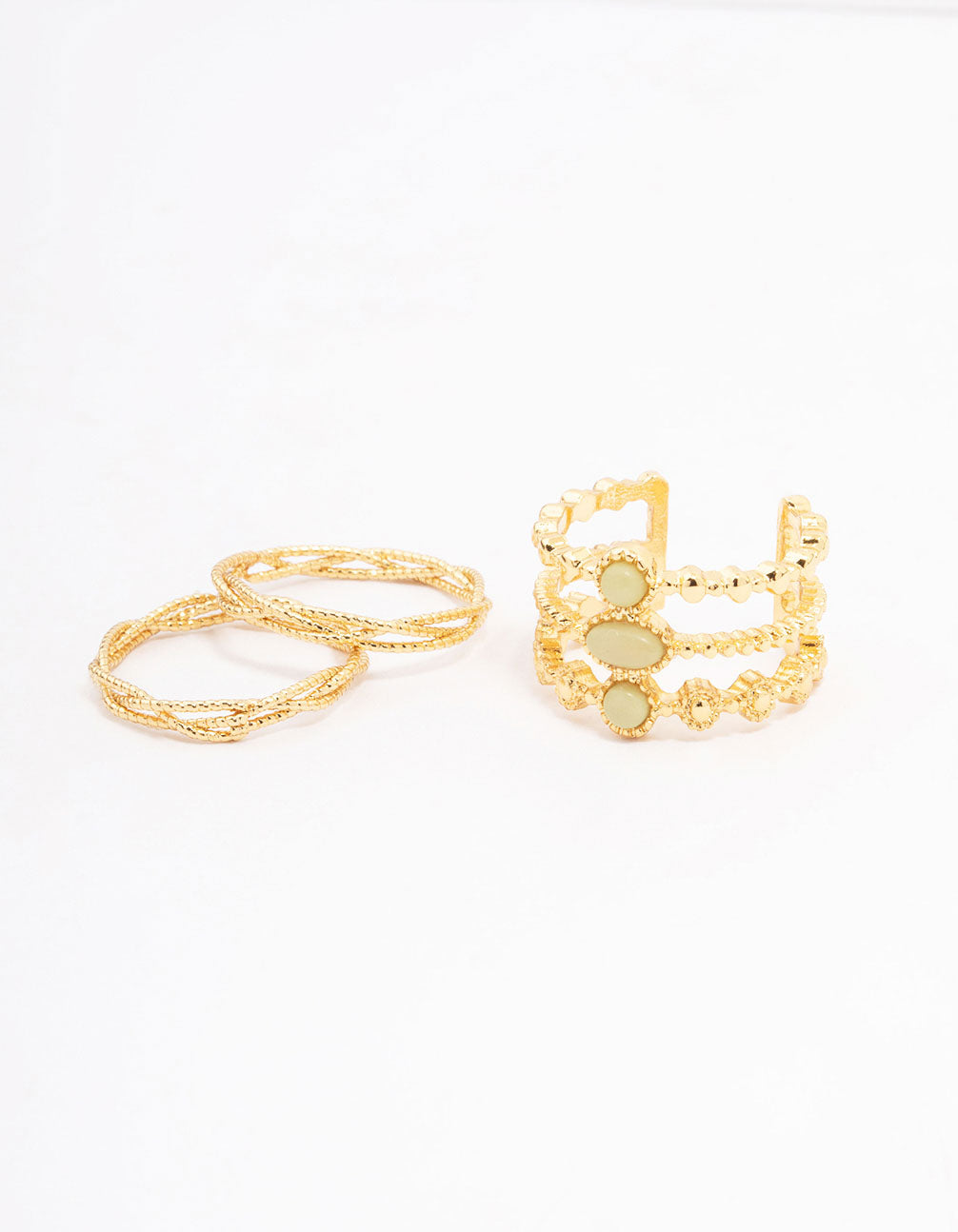 Create the stack of your dreams with this set of stacking rings. This ring pack includes three individual, gold plated rings. Perfect for elevating your look!