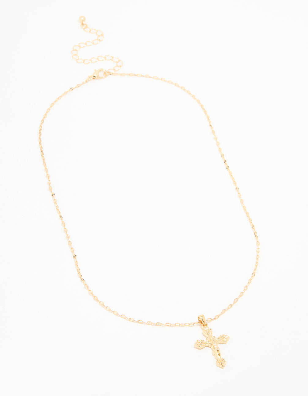Elevate your accessories game with this Gold Plated Vintage Cross Pendant Necklace. This stunning piece of jewellery combines timeless charm with a modern edge, featuring a beautifully detailed cross pendant in gold plating. Whether you're dressing up for a night out or adding a chic touch to your everyday look, this pendant necklace is a must-have. Style it solo for a minimalist vibe or layer it with other necklaces to create a statement. Perfect for pairing with casual outfits or glam ensembles, this versatile vintage-inspired necklace is a go-to for any occasion. An ideal accessory to enhance your personal style!