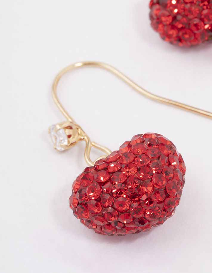 These fine, gold-toned drop earrings feature red, diamante-encrusted hearts for a vibrant and lovable look.