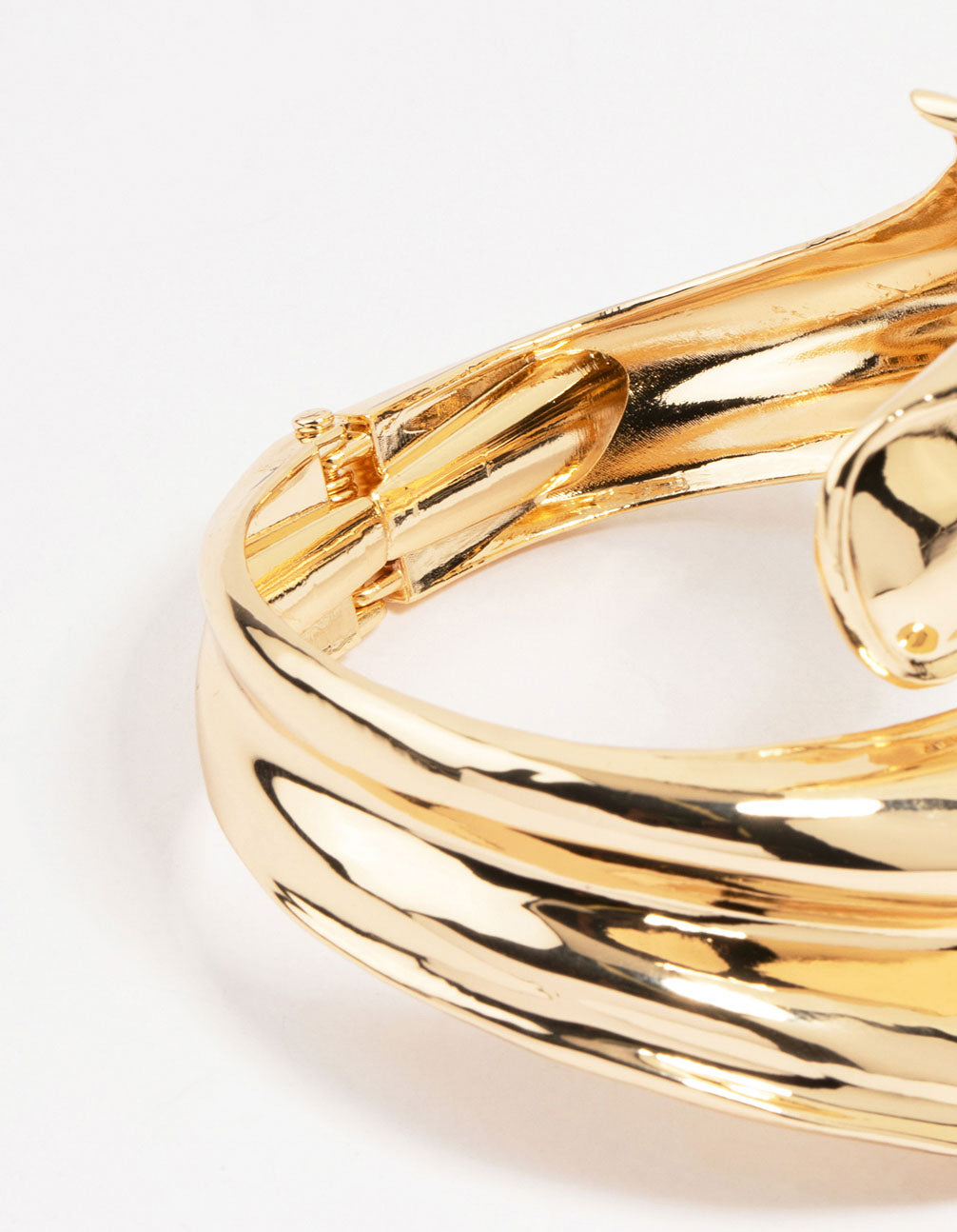 Add a little shimmer to your wrist with this Gold Ribbed Wave Wrap Wrist Cuff. This chic cuff features a stunning wave-inspired ribbed design, wrapping elegantly around your wrist in a gold-toned finish.