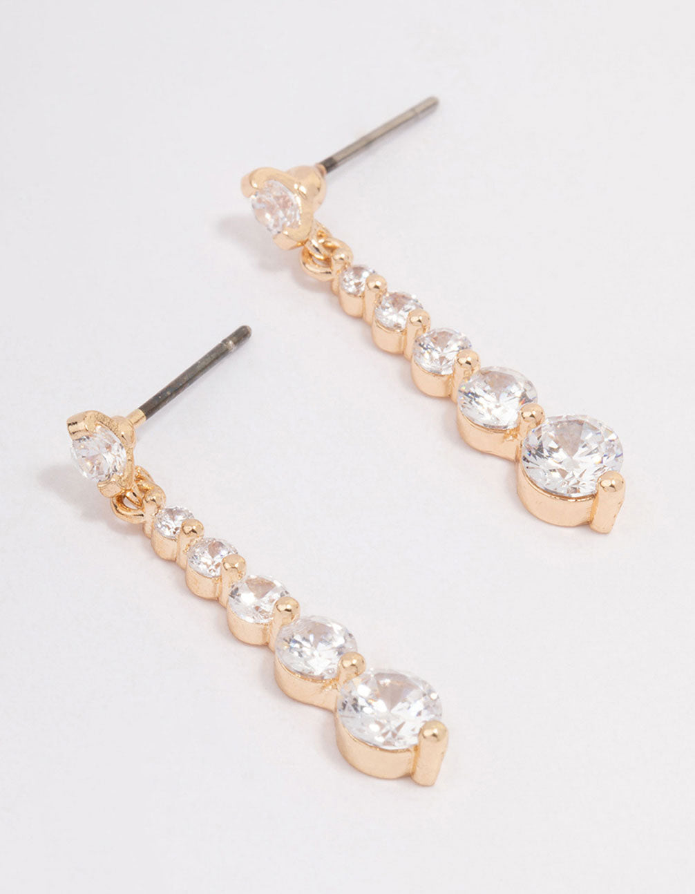 Gold Round Graduating Cubic Zirconia Drop Earrings