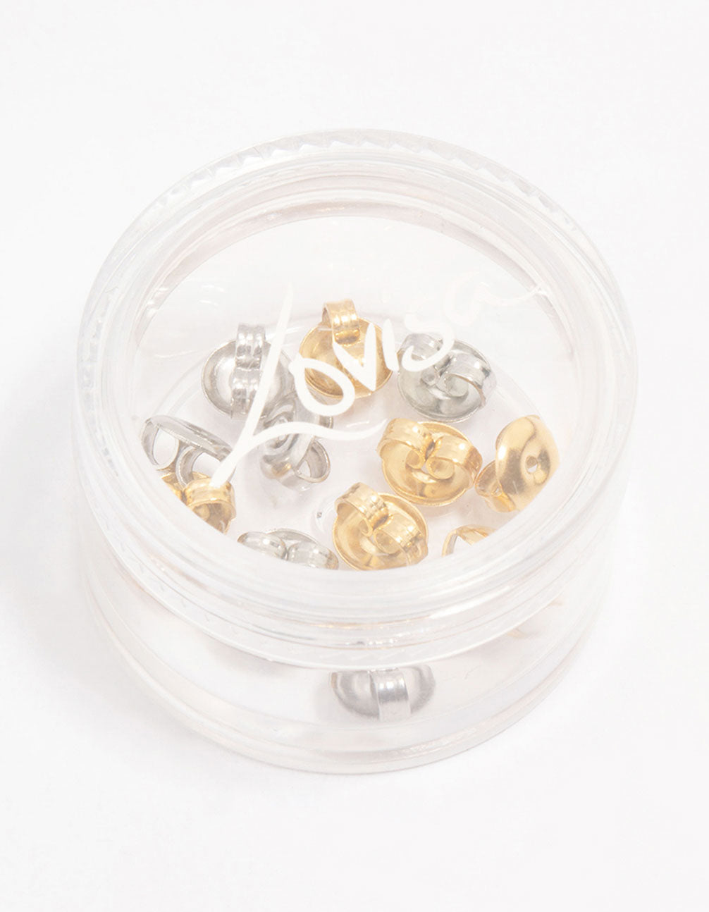 In need of an emergency earring back? Stock up with this set of surgical steel earring backs. Perfect for keeping in your handbag, your desk and at your vanity!