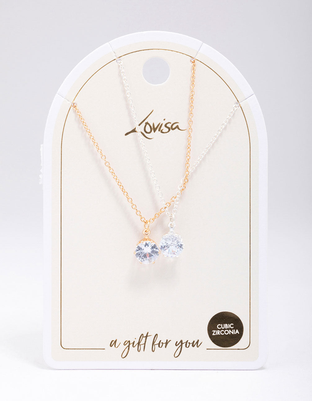 Gold & Silver Mixed Metal Solitaire Crystal Necklaces 2-Pack