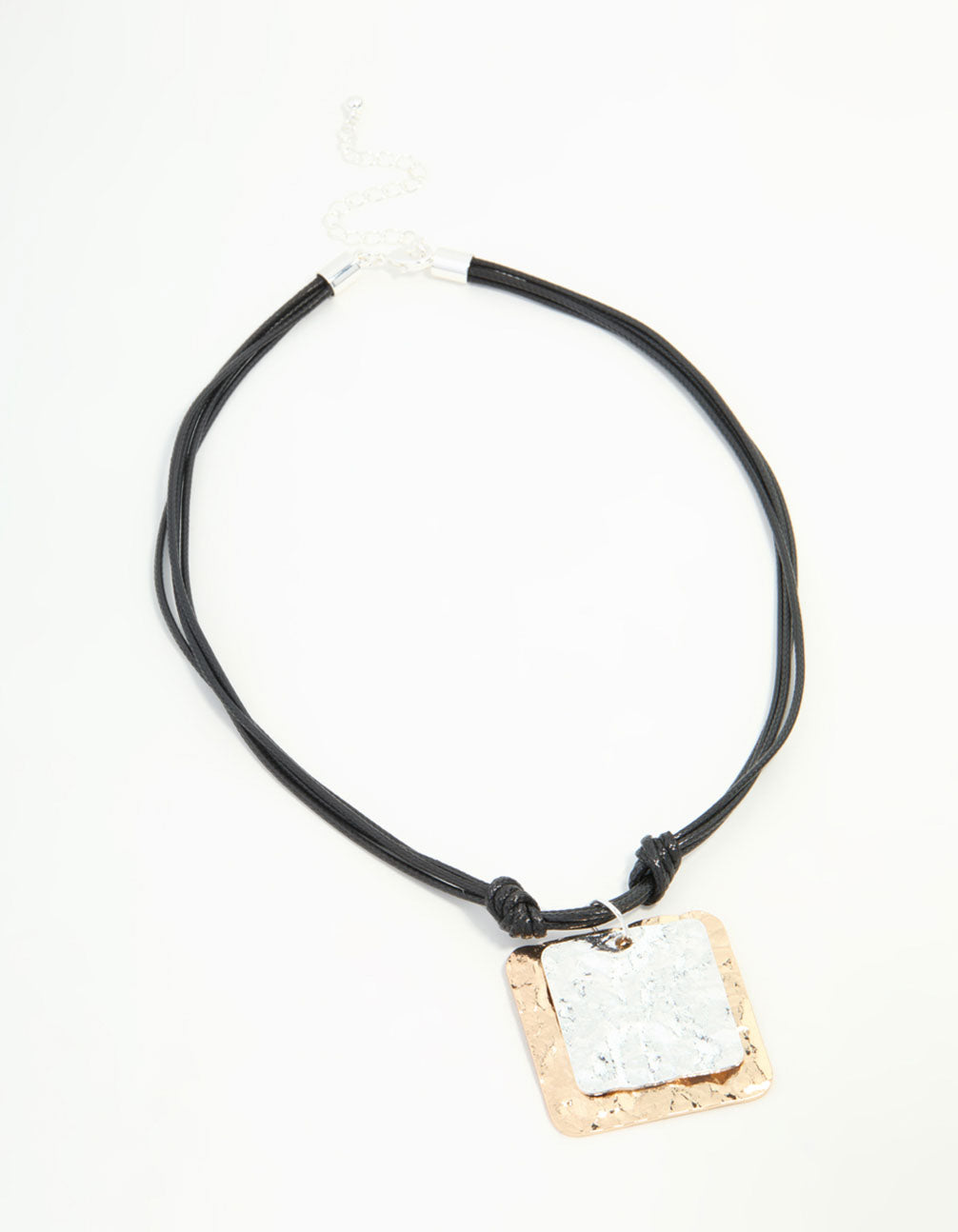 Gold & Silver Textured Pendant Cord Necklace Gold & Silver Textured Pendant Cord Necklace Gold & Silver Textured Pendant Cord Necklace