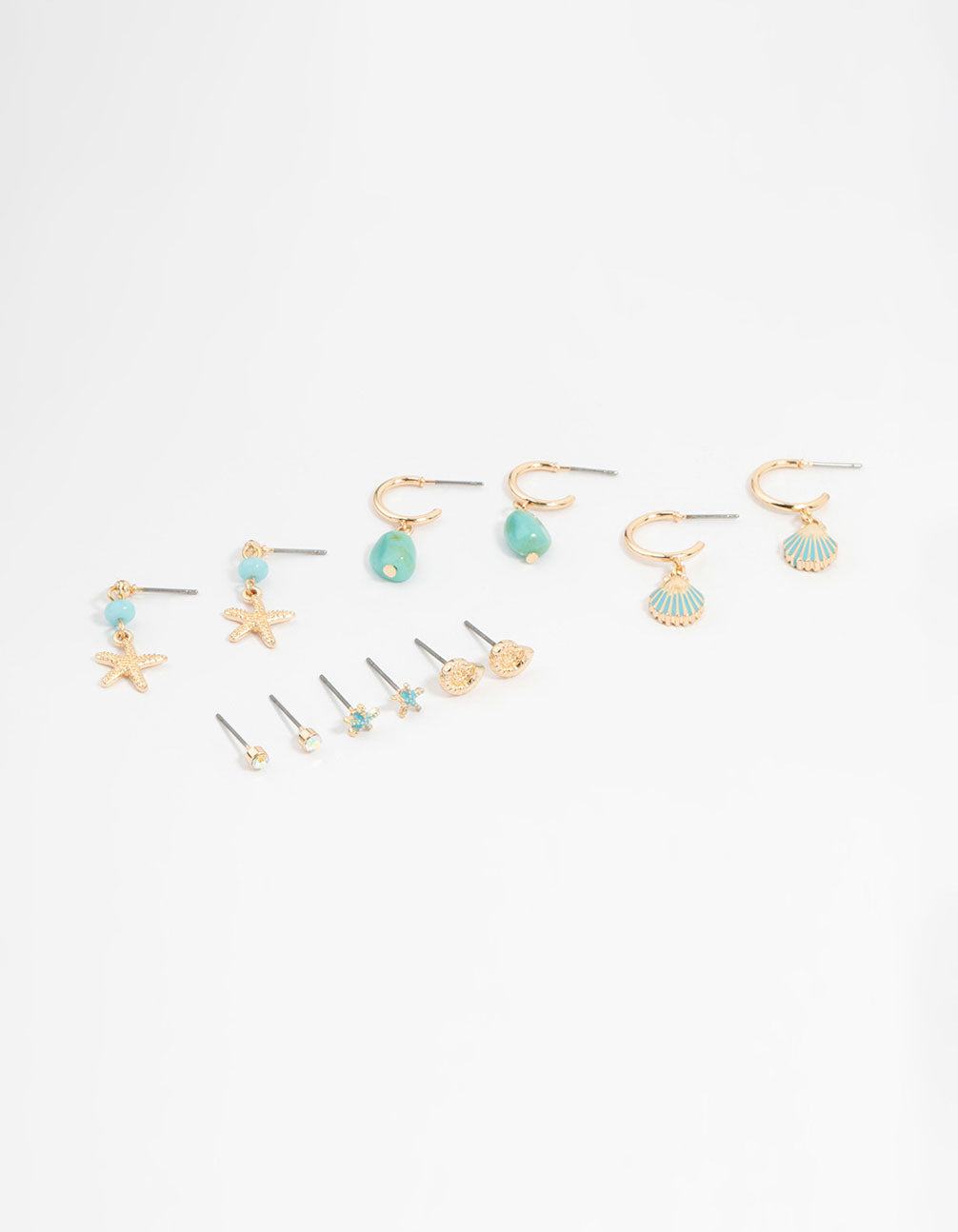Gold Starfish & Shell Mixed Earrings 6-Pack