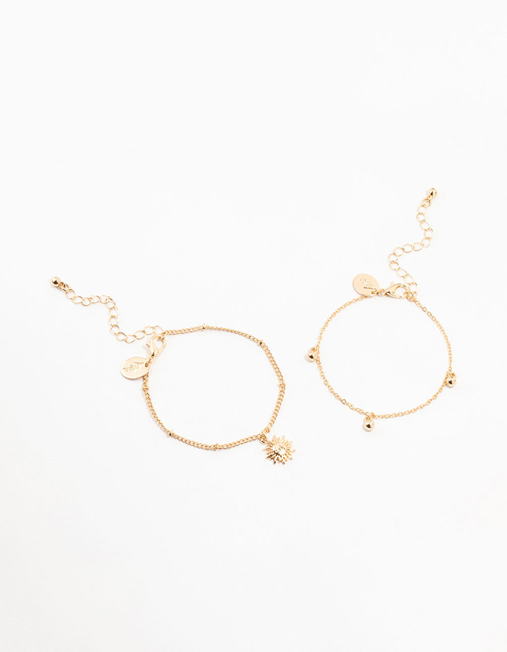 Gold Sun & Ball Pendant Bracelets 2-Pack
