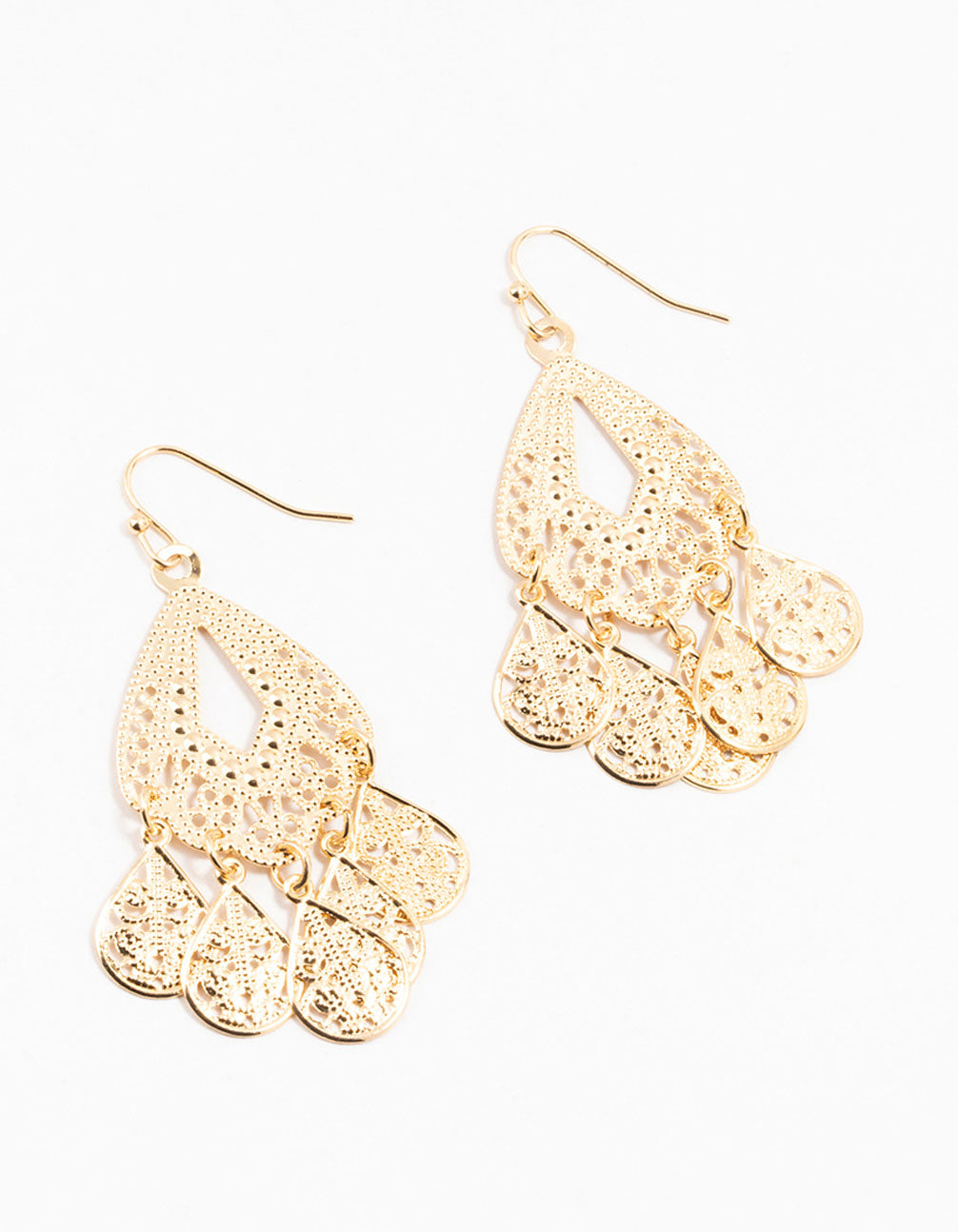 Dazzle with these eye-catching Gold Teardrop Dreamcatcher Drop Earrings, a captivating blend of elegance and whimsy. The teardrop shape and dreamcatcher detailing lend a chic, bohemian flair.