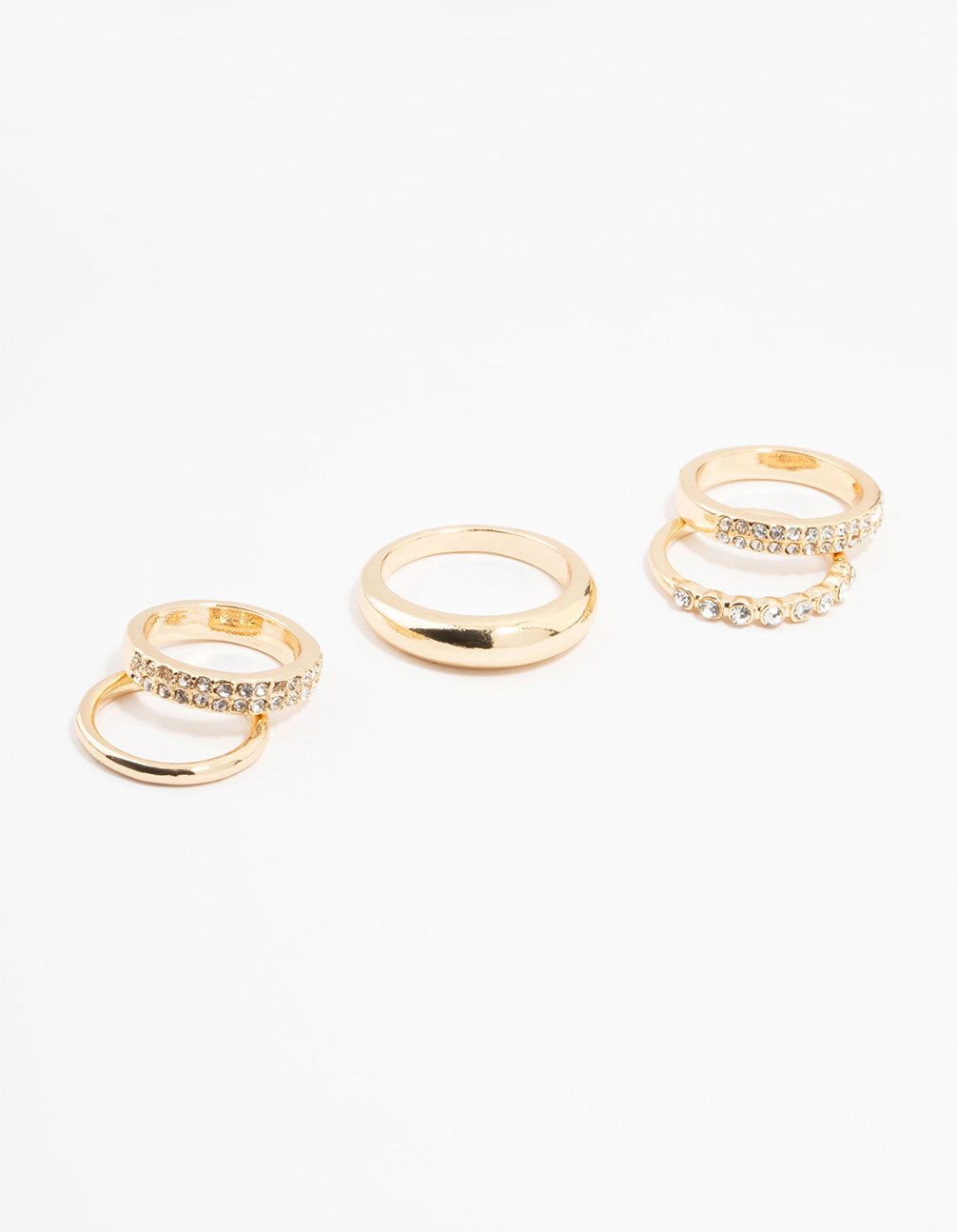 Gold Thick Diamante Band Rings 5-Pack Gold Thick Diamante Band Rings 5-Pack Gold Thick Diamante Band Rings 5-Pack