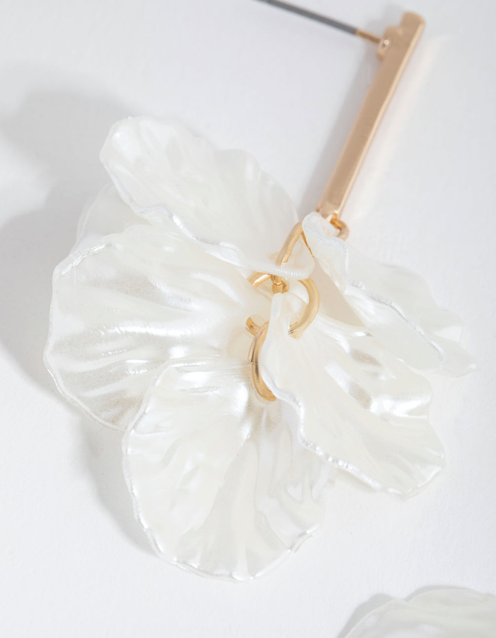 Channel the volcanic, seaside vibes of Santorini with these beautiful earrings! They feature a series of pearlised white petals on a gold-toned setting. Wear them for a soft, pretty look.