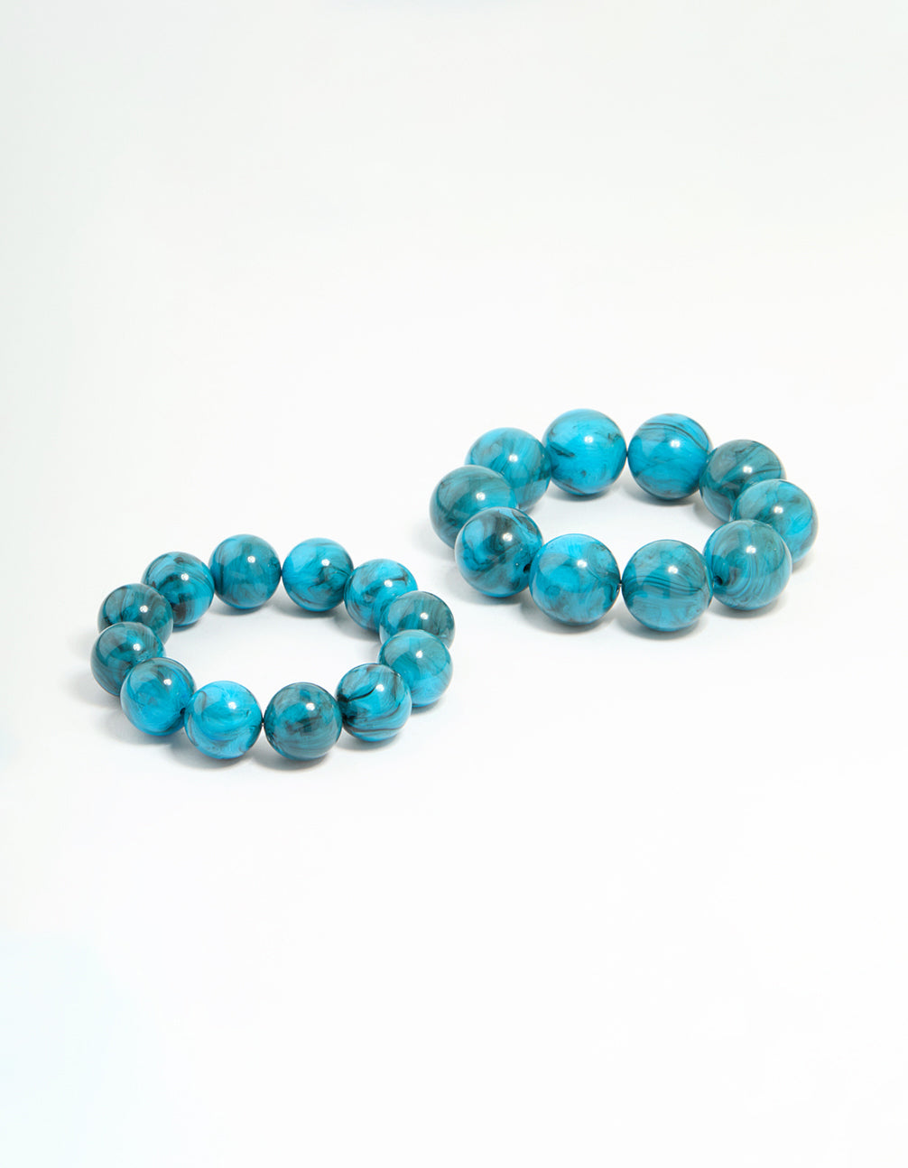 Gold Turquoise Acrylic Beaded Stretch Bracelets 2-Pack