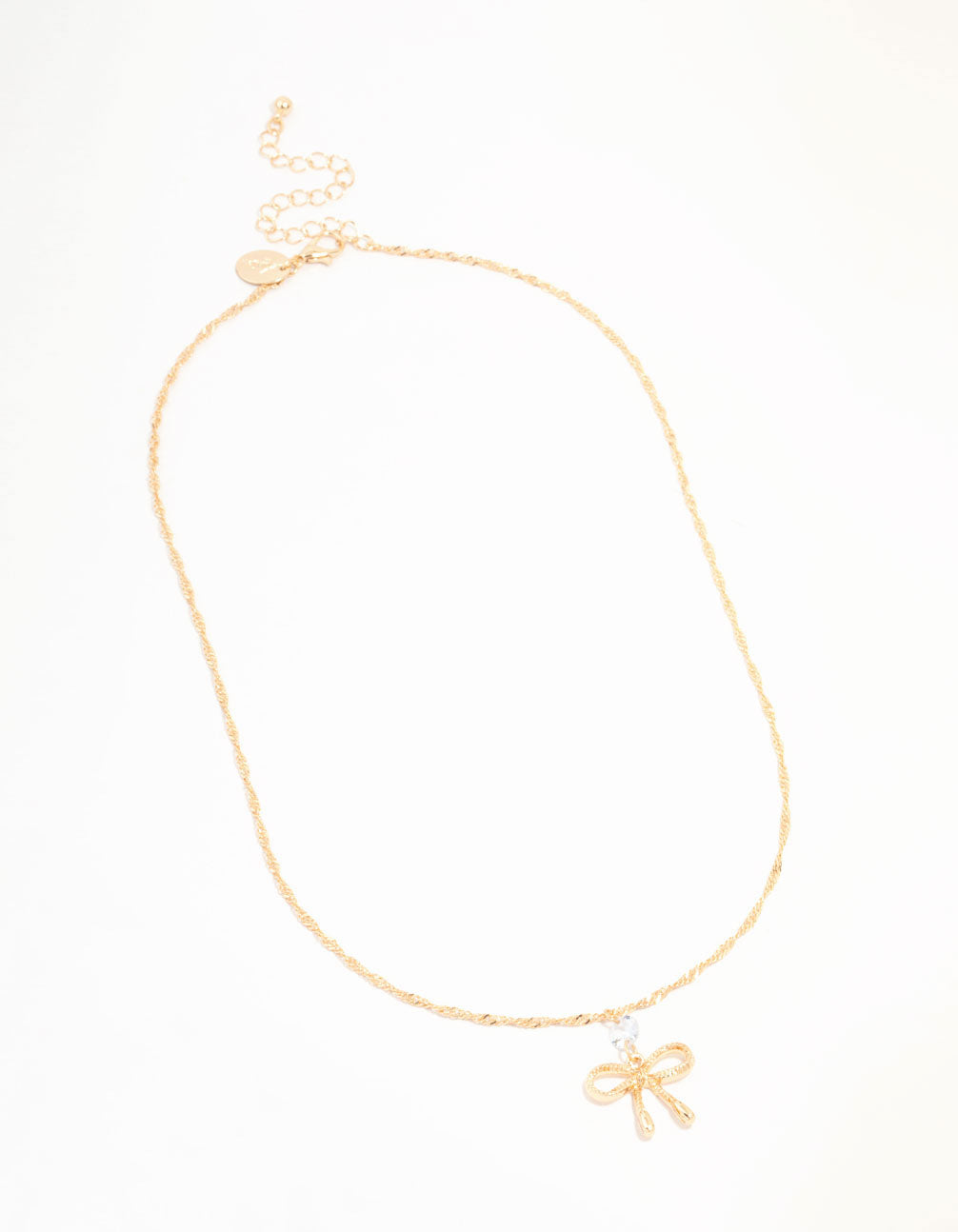 Gold Twisted Diamante Bow Chain Necklace