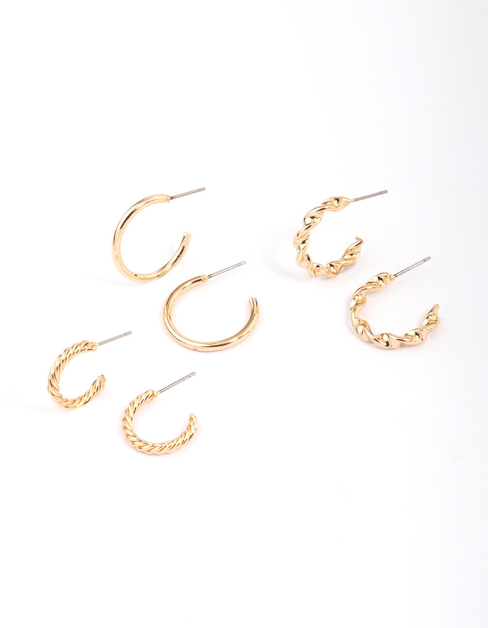 Gold Twisted & Polished Hoop Earring 3-Pack