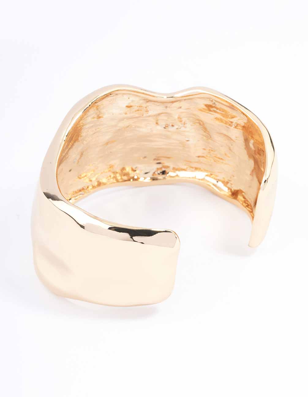 This gold-toned cuff features a unique, molten texture and wide silhouette — perfect for accentuating a going out outfit.