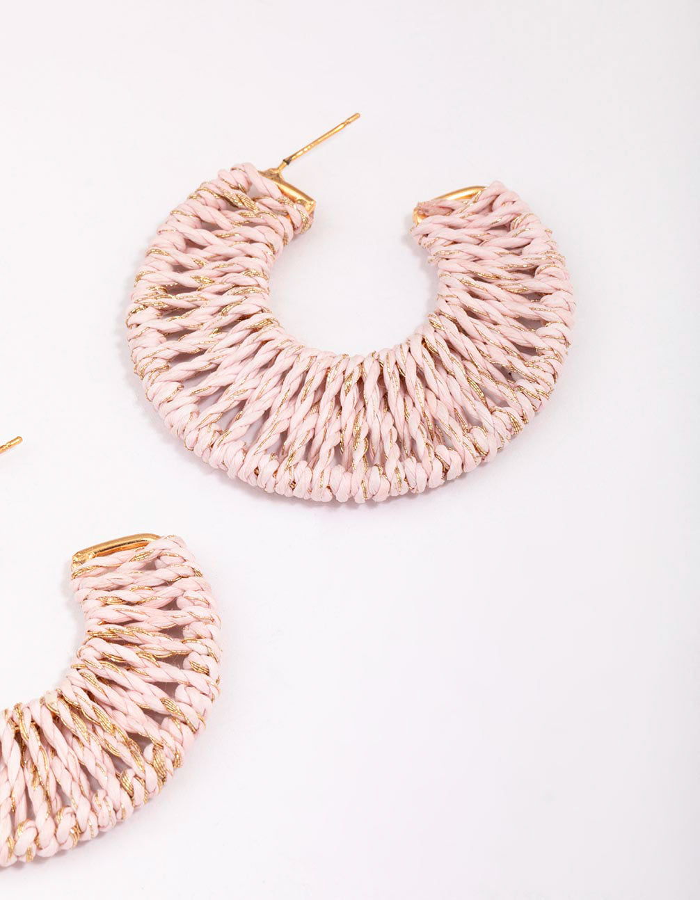 These hoops are designed with a woven, light pink fabric for a boho-inspired look.