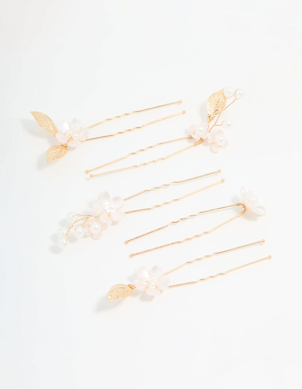 Upgrade your bridal hair game with this Gold Wire Flower Pearl Hair Pins Pack. These delicate hair pins feature intricate gold wire floral designs, accented with lustrous pearls for a timeless finish.