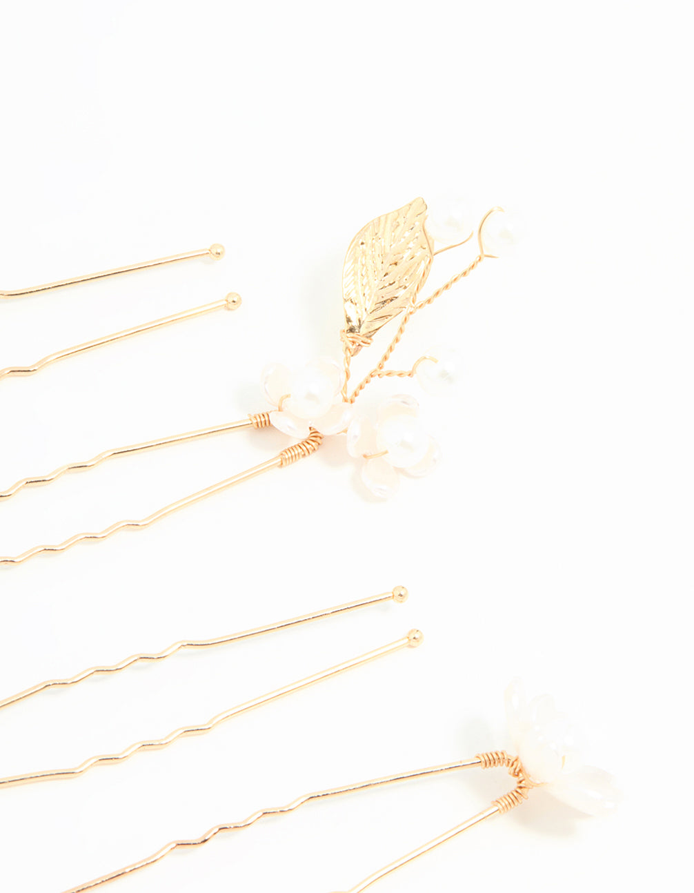 Gold Wire Flower Pearl Hair Pins 5-Pack
