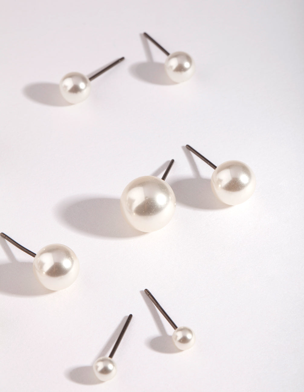 Glam up any outfit with this 5 pack of graduated faux pearl stud earrings.