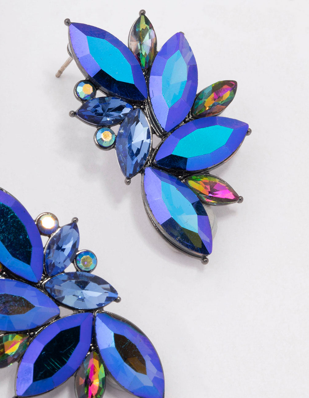 Silver Gunmetal Blue Diamante Marquise Statement Stud Earrings