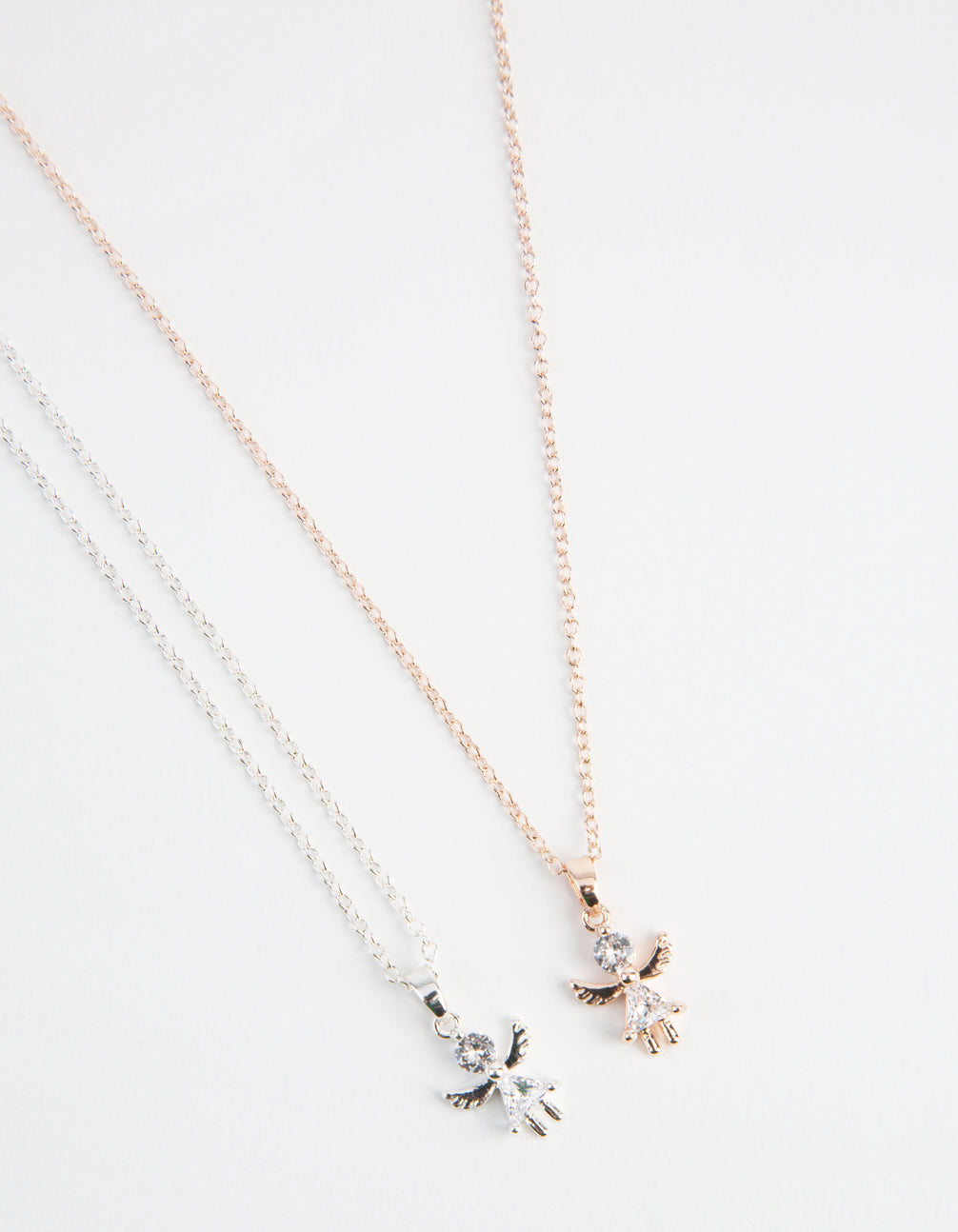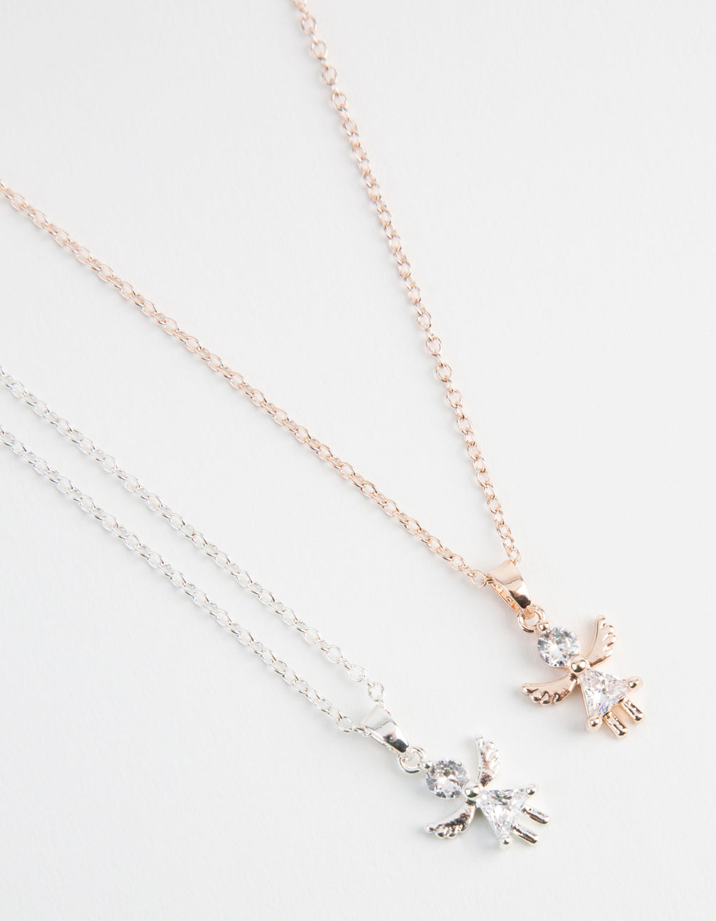 Delicate necklaces provide a versatile wardrobe staple as they can elevate any ensemble. Give someone special the perfect gift, or treat yourself with these dual-angel pendant necklace set. They're studded with diamantes to shine just as bright as the wearer!