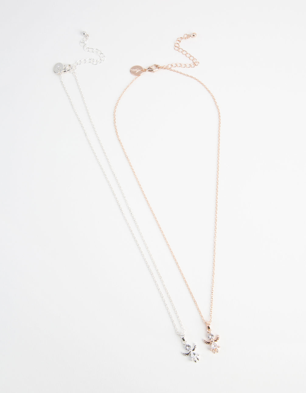 Mixed Metal Double Angel Diamante Necklace Mixed Metal Double Angel Diamante Necklace Mixed Metal Double Angel Diamante Necklace
