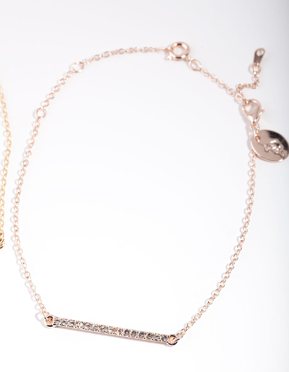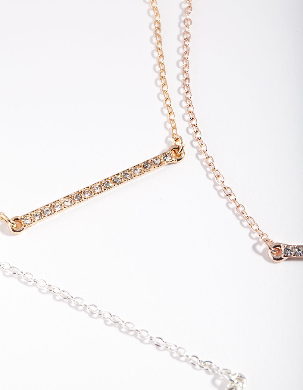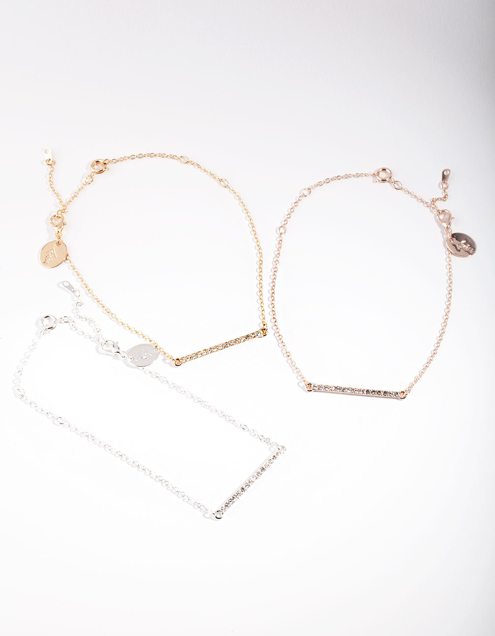 Shareable, giftable and packed in pretty packaging. Lovisa gift-boxes take the stress out of gift giving. This mixed metal gift box comes with three bracelets that can also be worn as anklets using the extender chain. They boast a diamante bar pendant design. Keep them all for yourself or give some to your best friends!