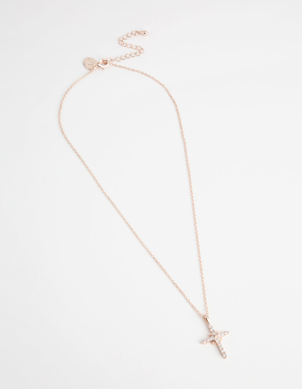Delicate necklaces provide a versatile wardrobe staple, as they can elevate any ensemble. Give someone special the perfect gift, or treat yourself with this dainty rose-gold-toned cross necklace. It's studded with diamantes to shine just as bright as the wearer!