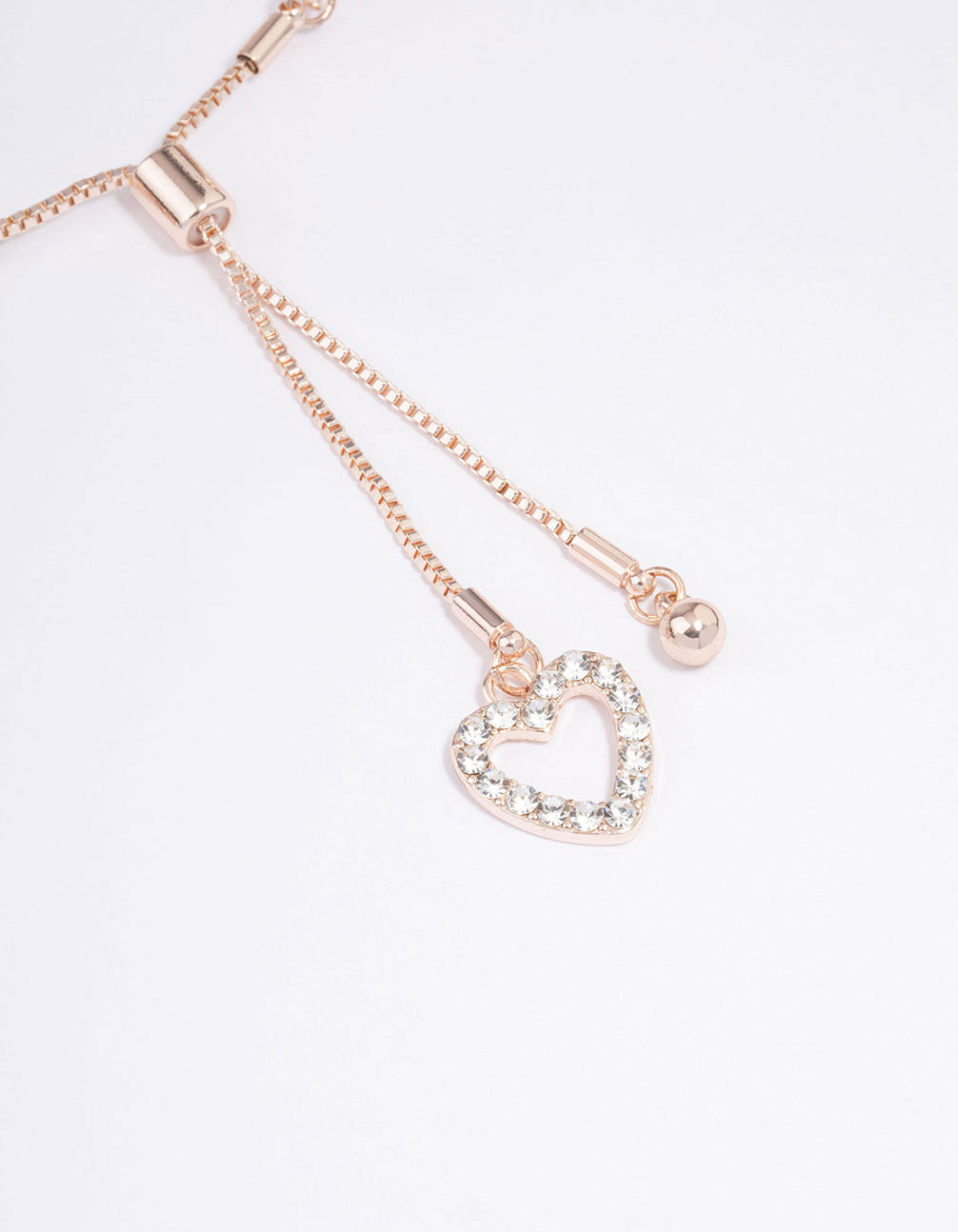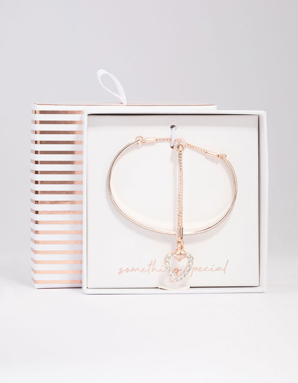 This gift box contains a rose gold toggle bracelet adorned with a diamante encrusted heart for a lovable look.