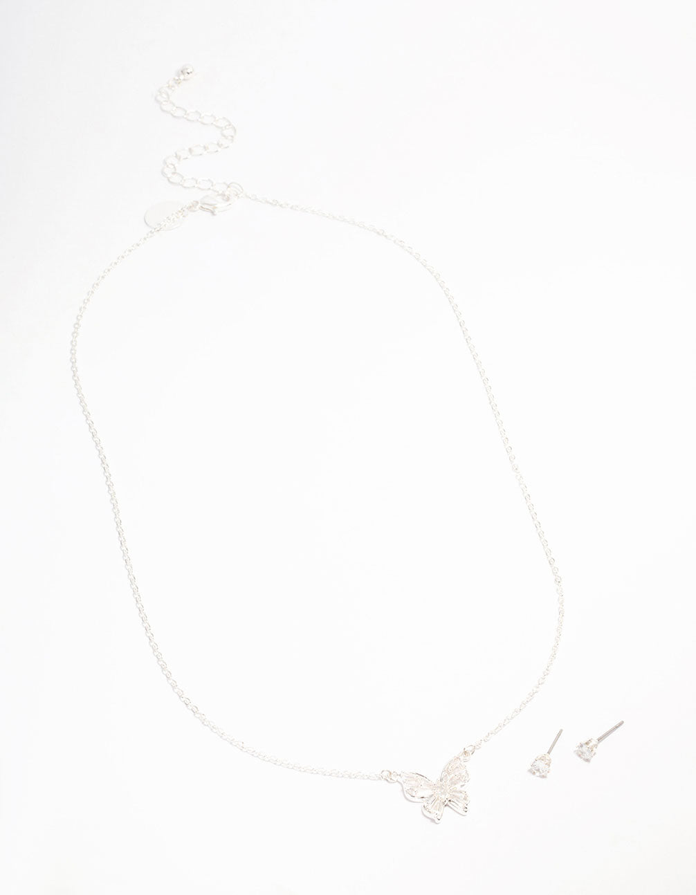 Silver Plated Butterfly Cubic Zirconia Necklace & Earrings Set