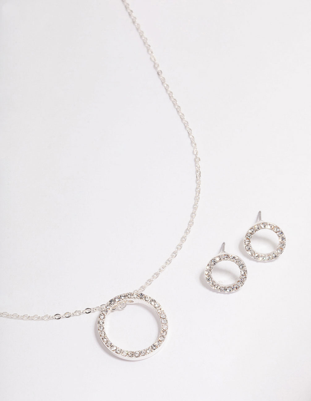Silver Diamante Open Circle Jewellery Set