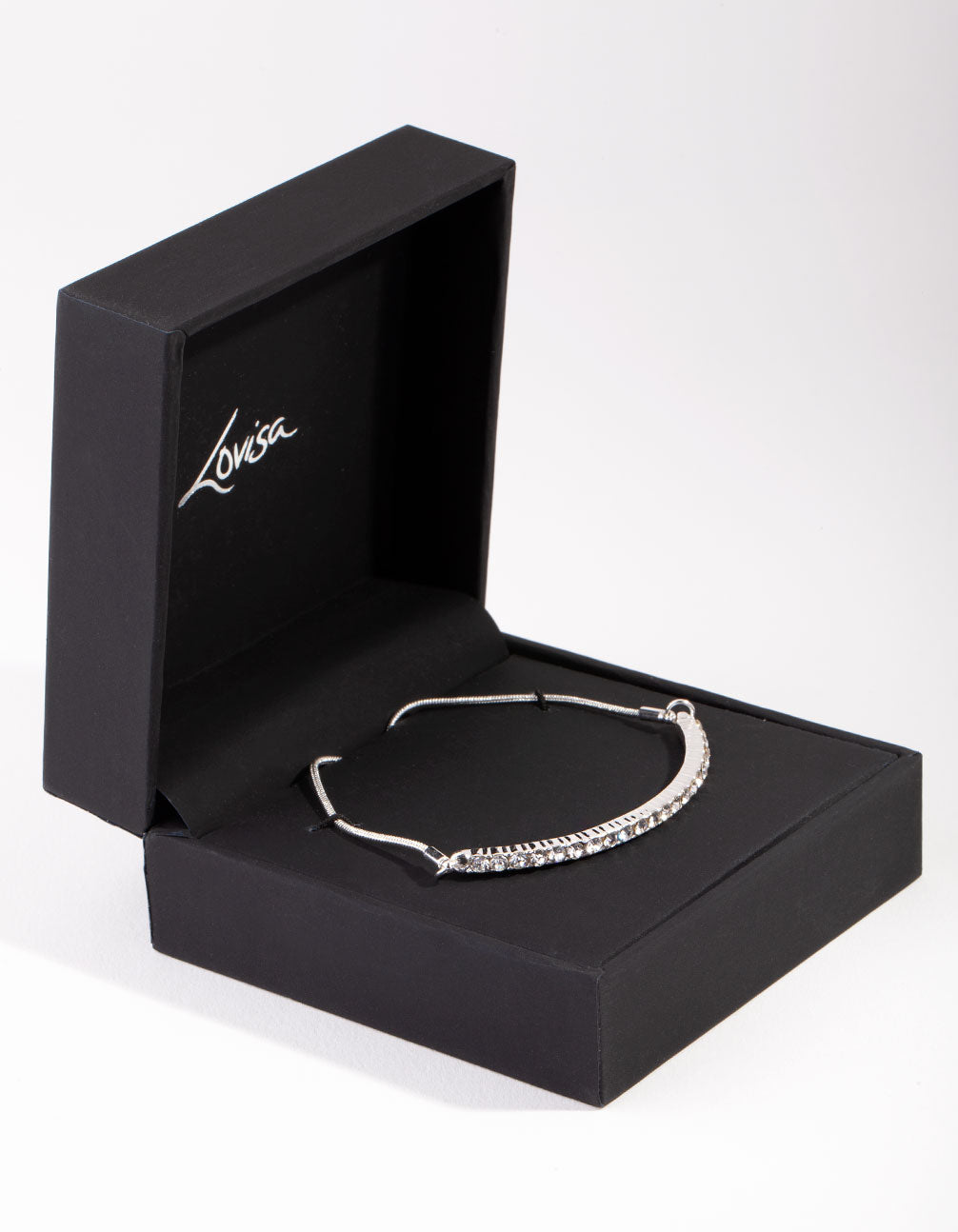 Dazzle and shine with eye-catching pieces featuring sparkling elements. This gorgeous silver-toned bracelet features a diamante encrusted centre that delicately rests on your wrist. This piece comes with an elegant black Lovisa box. Gift it to someone special or treat yourself!