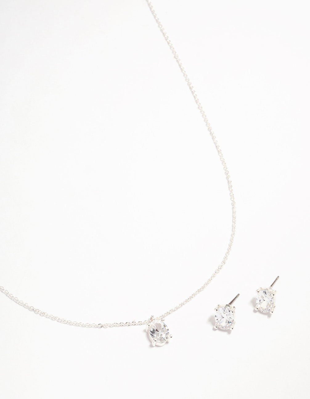 Silver Plated Oval Cubic Zirconia Necklace & Earrings Set