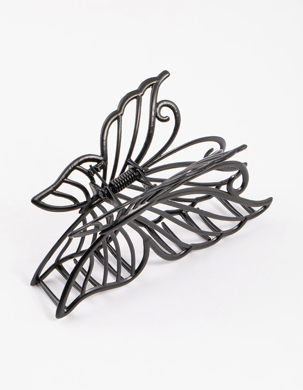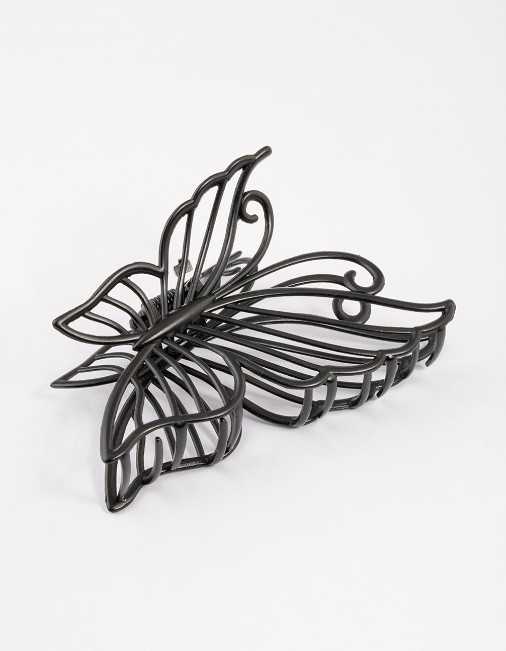 - This '90s-inspired hair claw features a coated black finish, with a detailed butterfly design for added detail.
