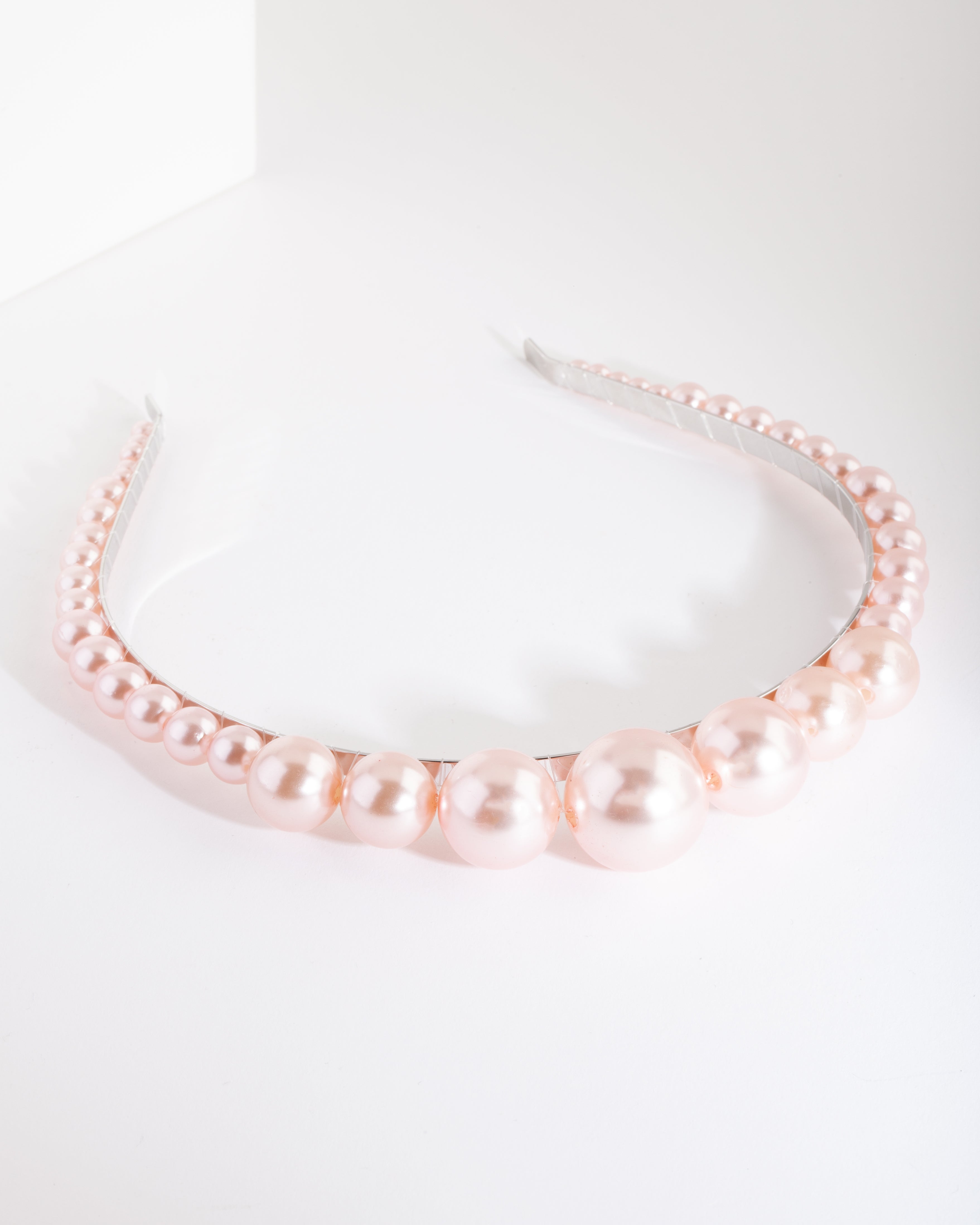 Elevate your look with this silver-toned blush pearl graduated ball headband.